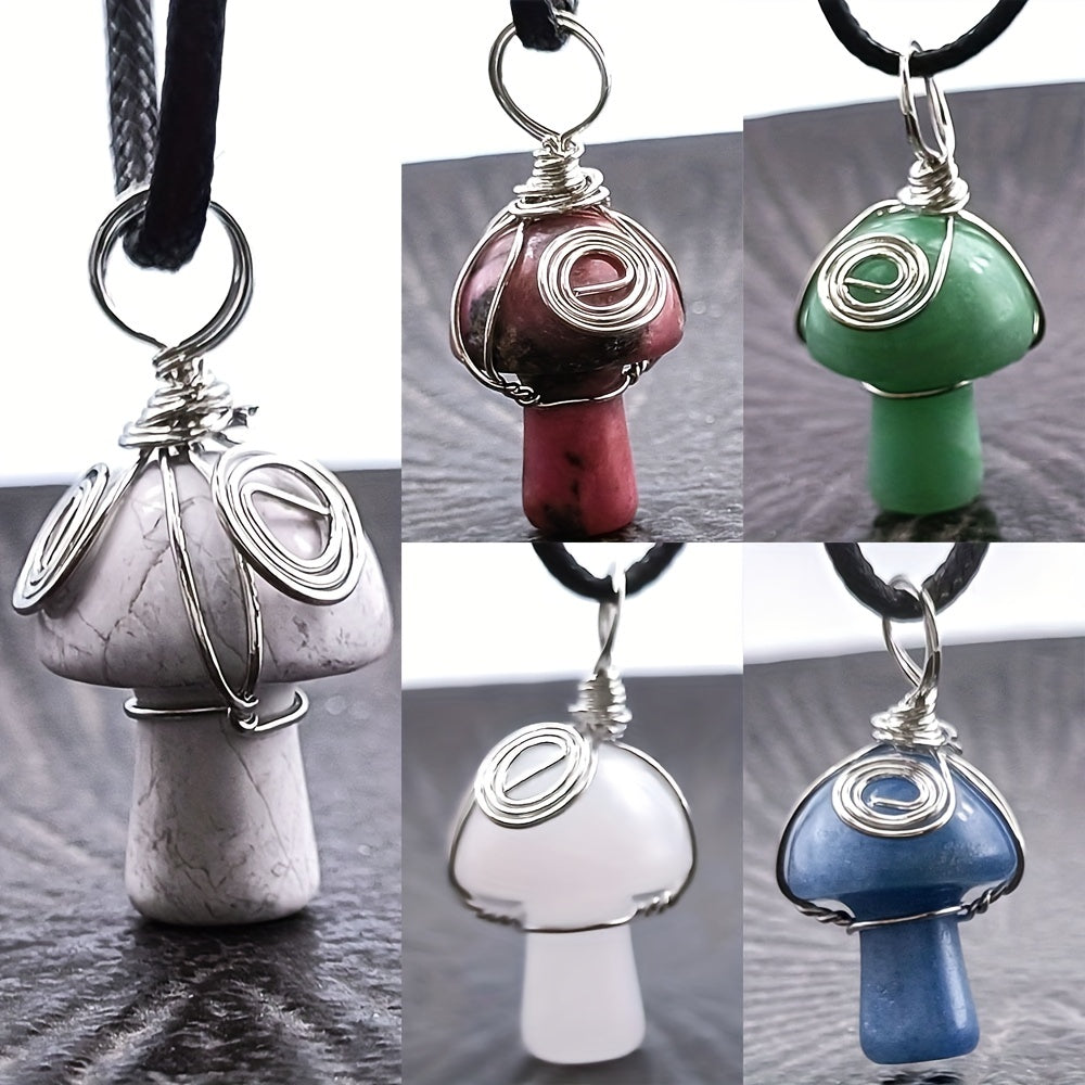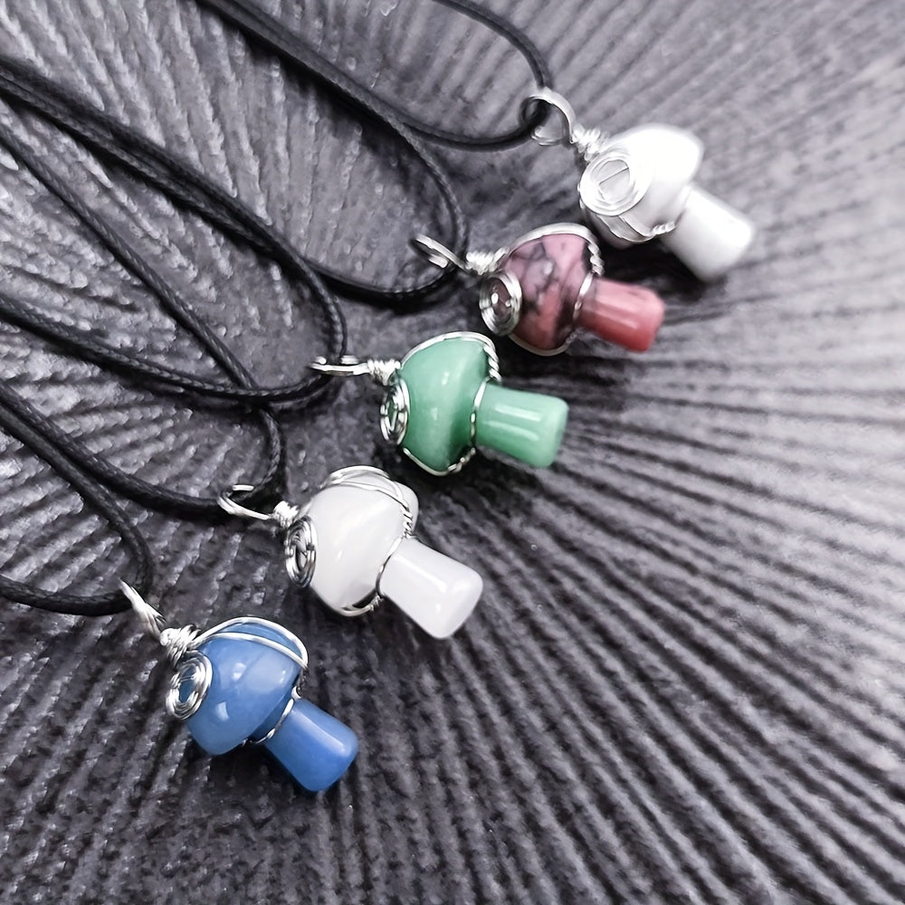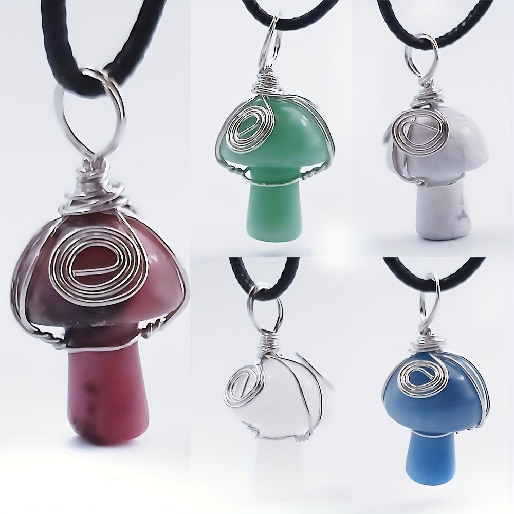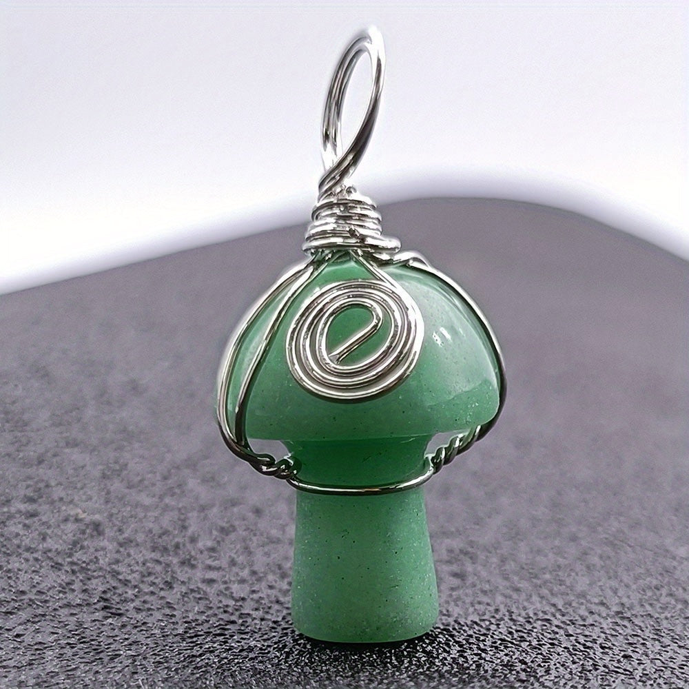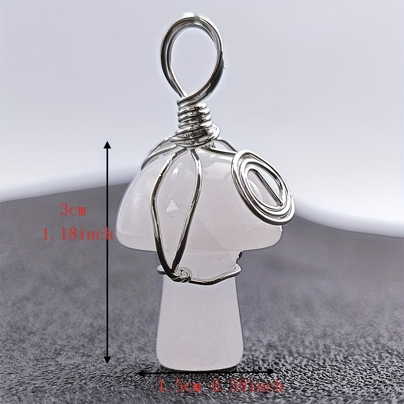 This natural crystal mushroom pendant necklace features a mini small mushroom jade design, perfect for DIY projects.
