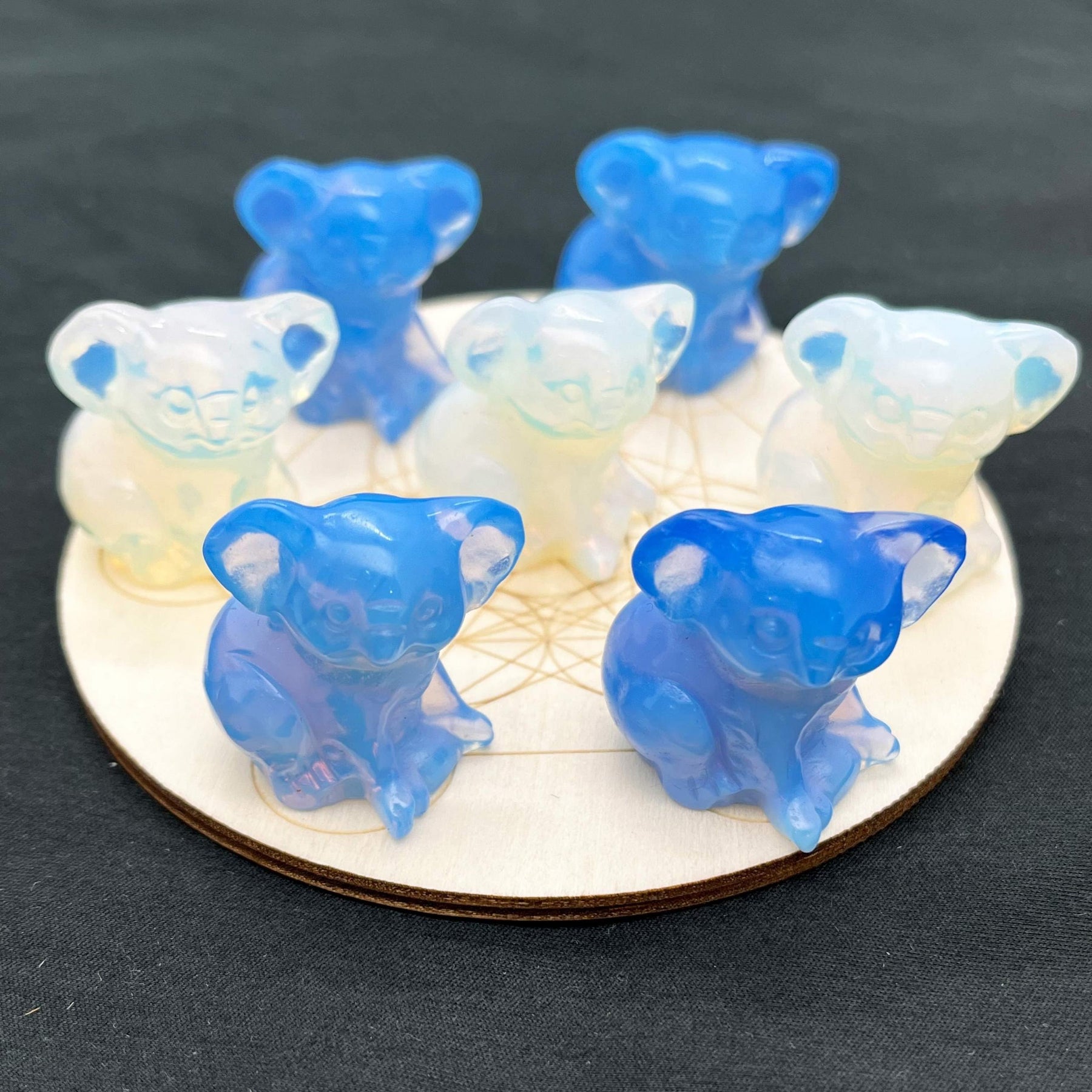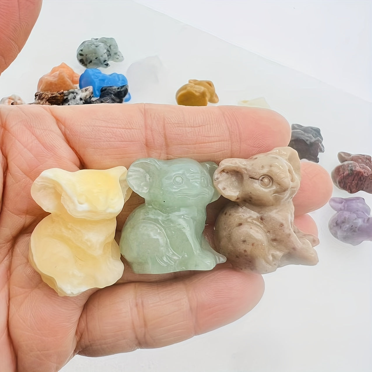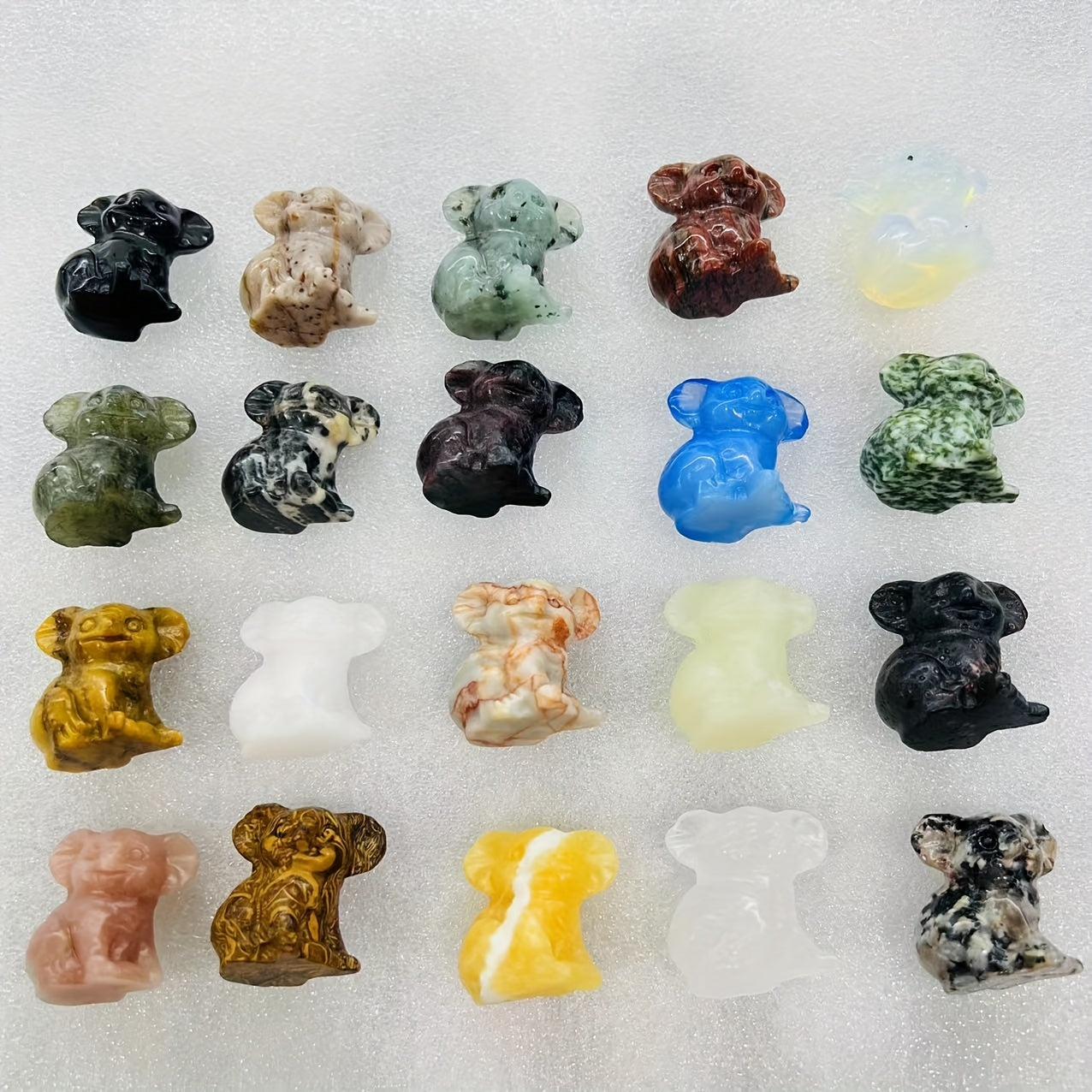 Enhance your interior decor with this unique natural crystal rough koala animal hand carved piece. The fluorite crystal carving offers healing properties and serves as a beautiful decorative item.