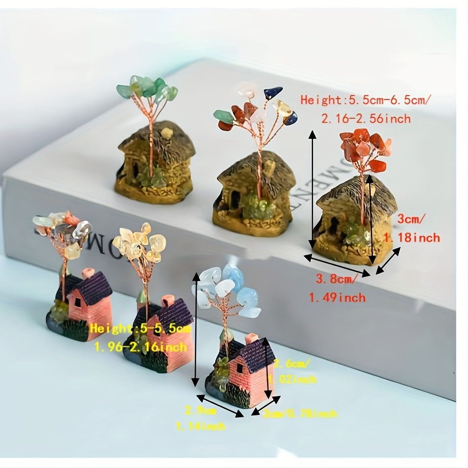 Natural Crystal Tree & Cabin Shape Ornaments for Home Decor