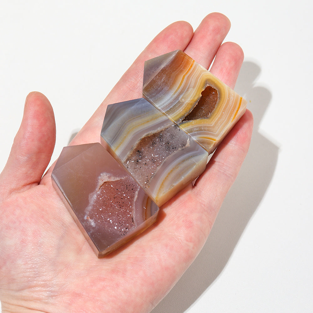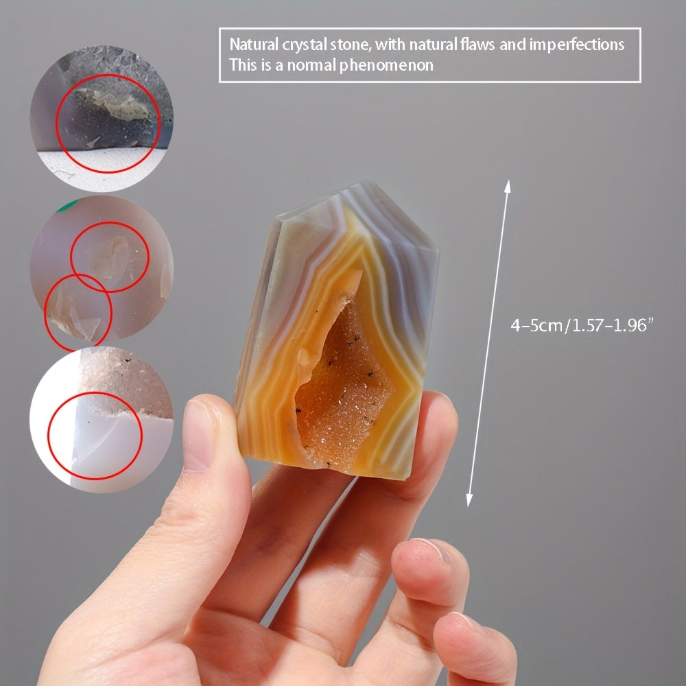 Add a touch of nature with this stunning natural quartz tower ornament. The agate crystal cave power gemstone will bring positive energy to your space.