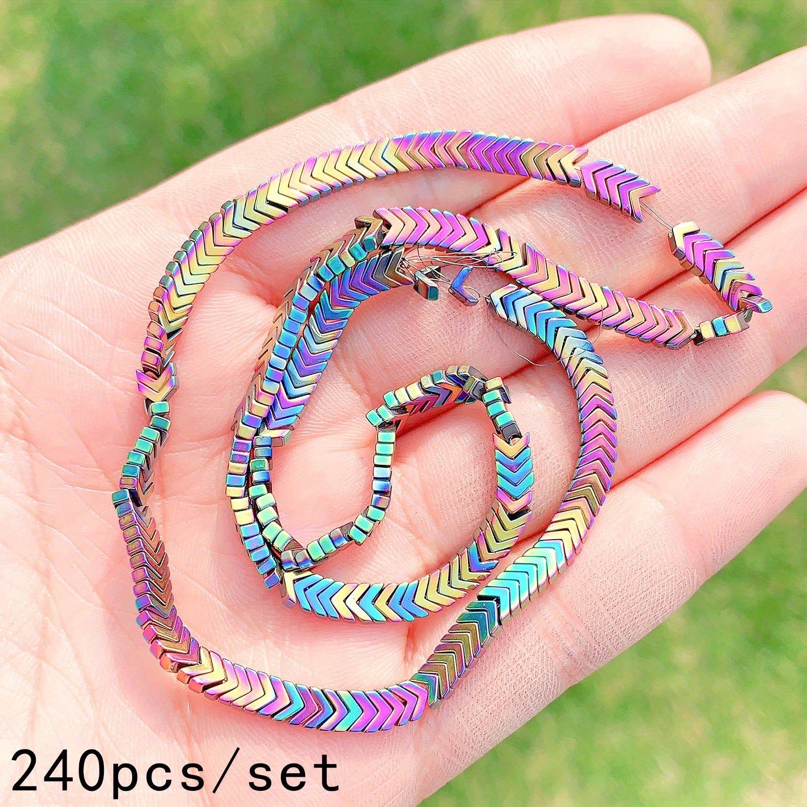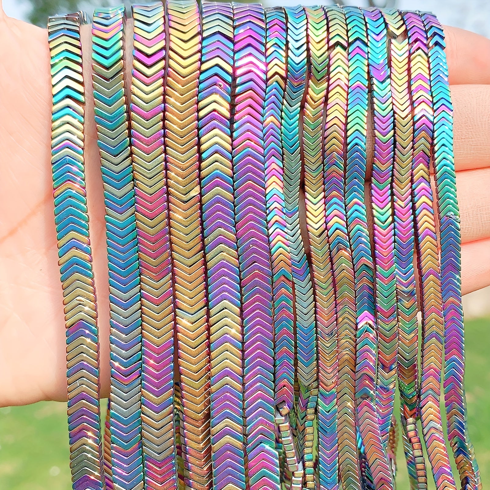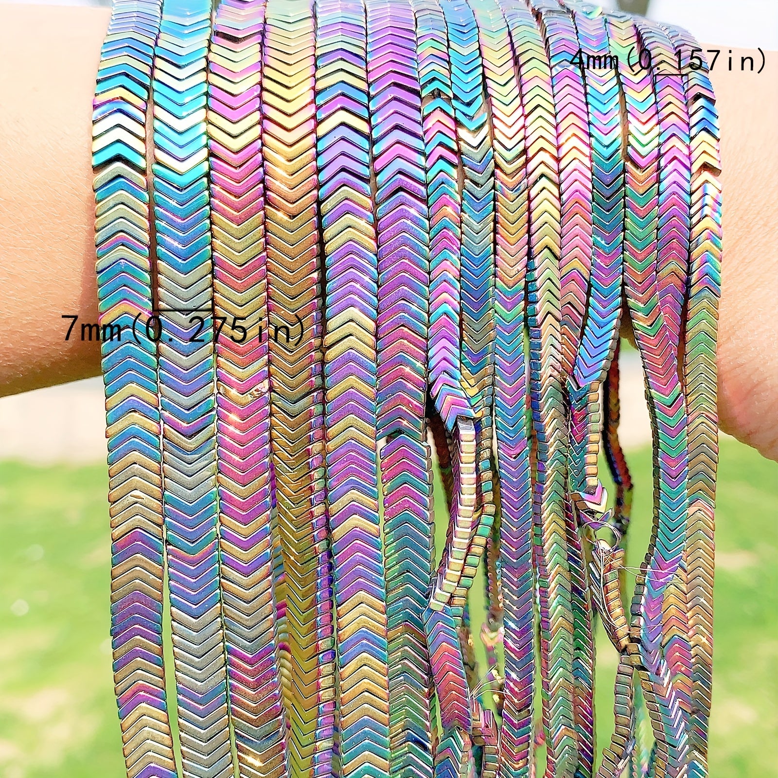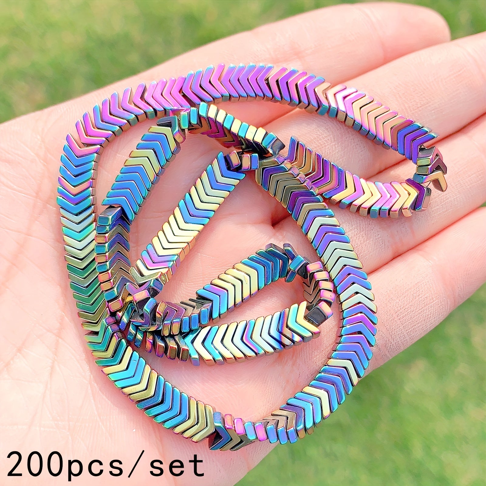 Enhance your jewelry-making projects with this set of natural rainbow hematite arrow shape loose beads. Perfect for DIY bracelets and other accessories.