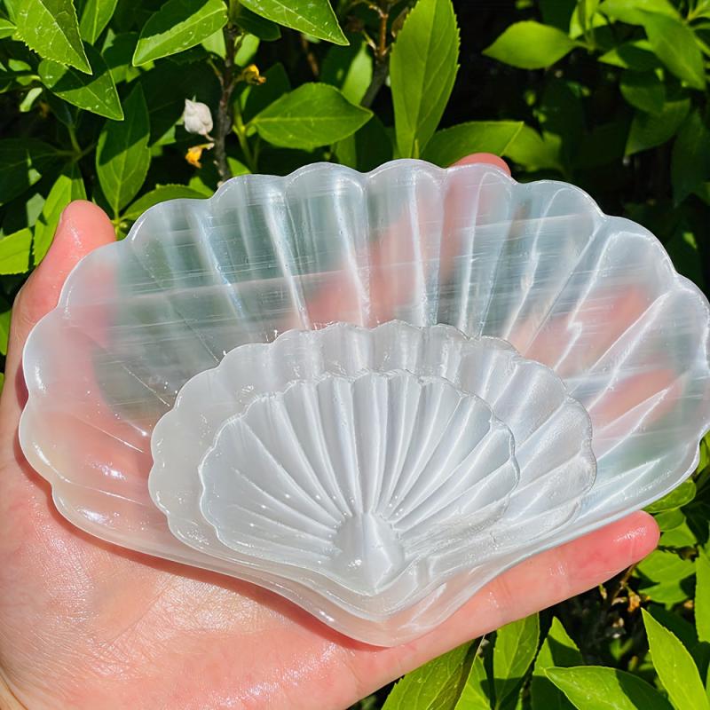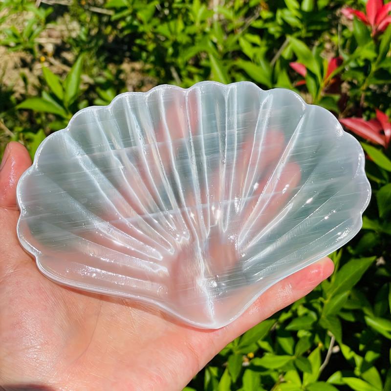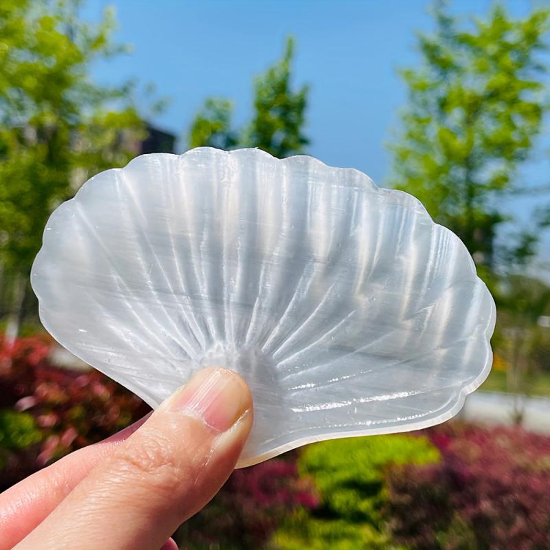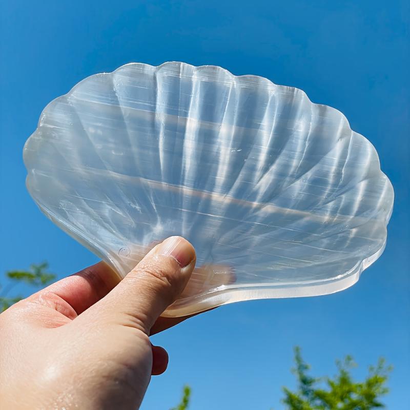 This polished translucent selenite sea shell bowl is perfect for adding a touch of elegance to your home or desktop decor. It also makes a great holiday gift for teachers, graduates, mothers, and friends.