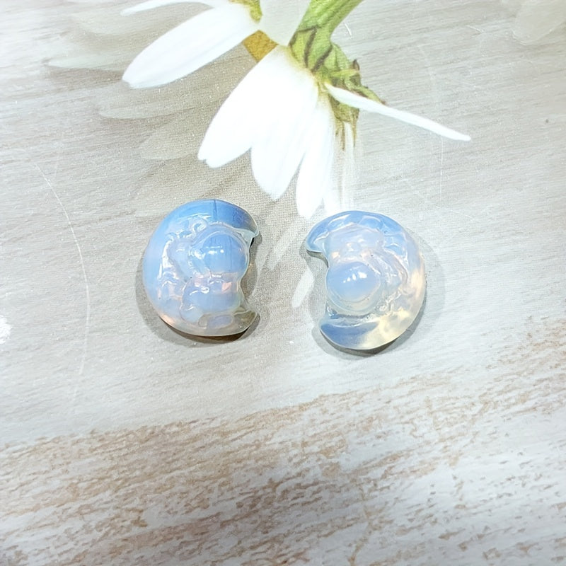 Enhance your space decor with this stunning Opalite carving of an astronaut sitting on the moon. Opalite is a powerful healing stone that promotes peace and tranquility.