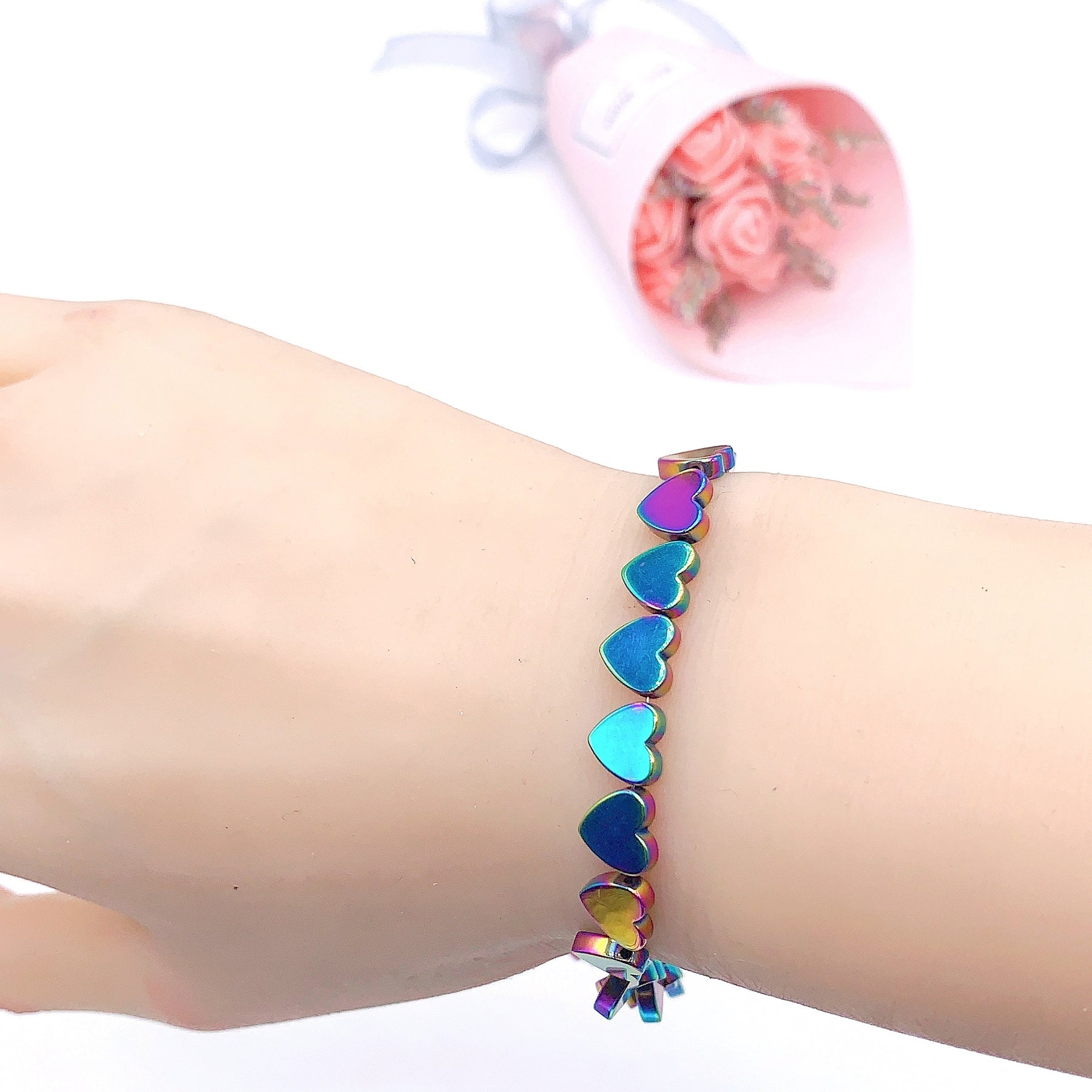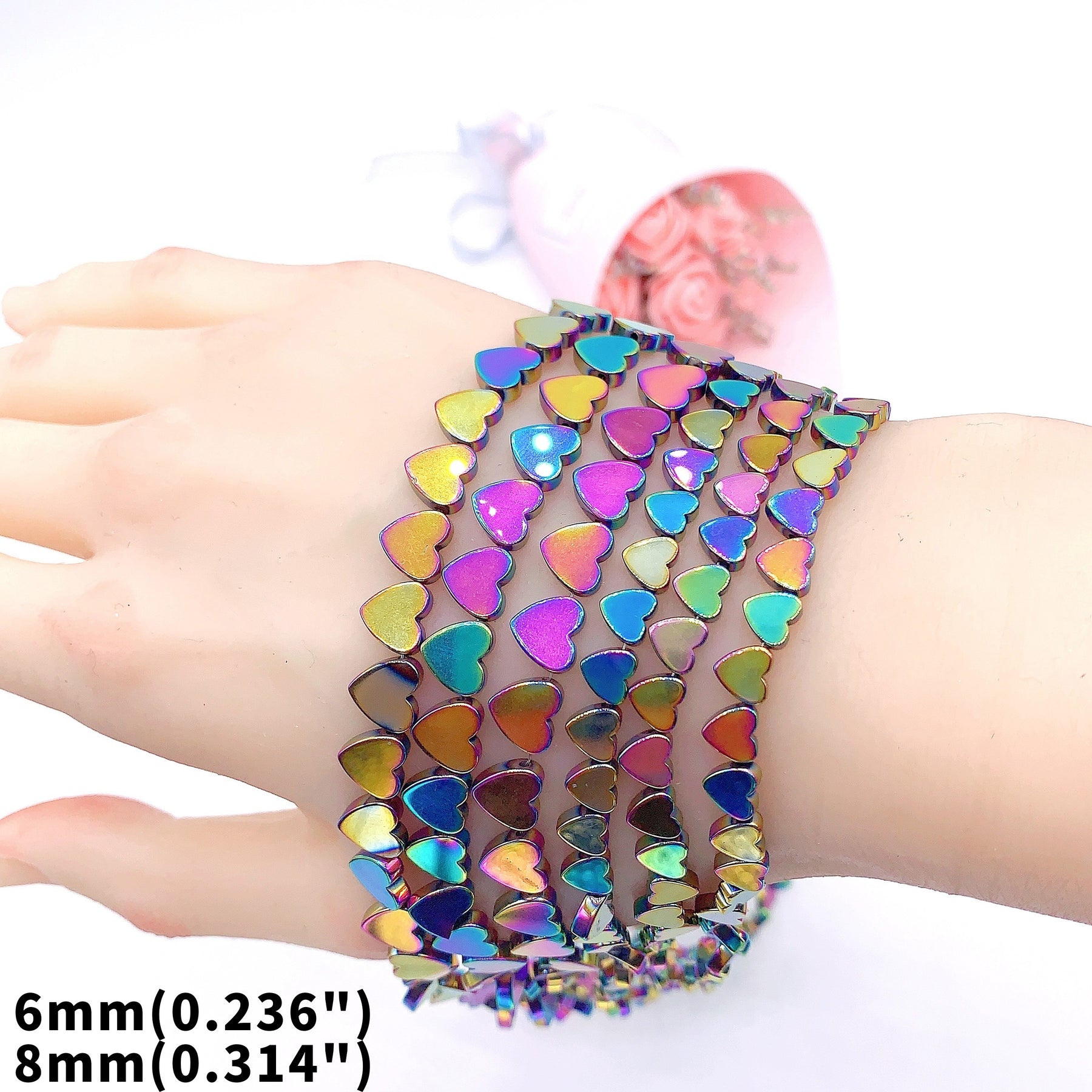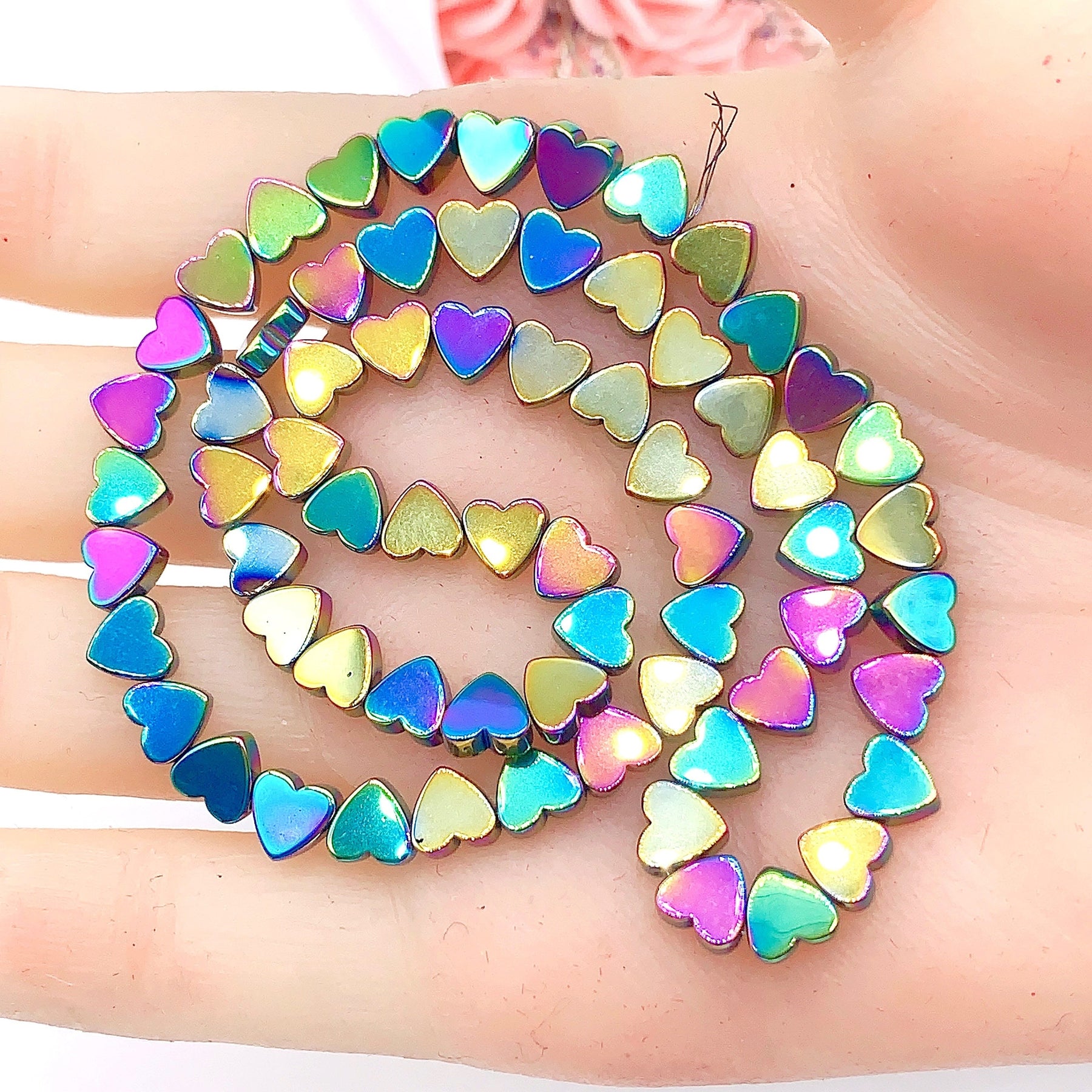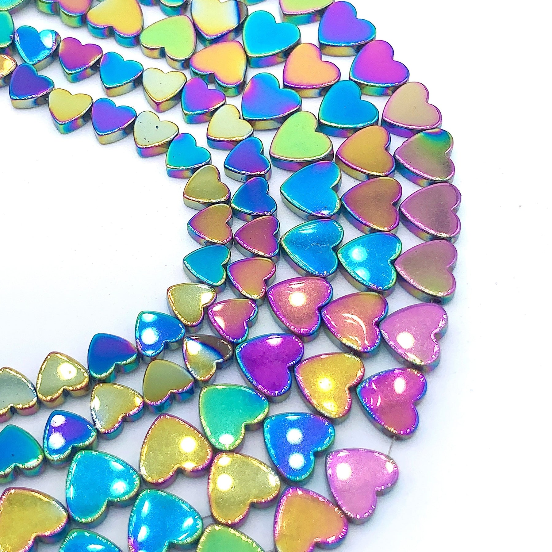 Rainbow Hematite Heart Shape Loose Beads for DIY Bracelet