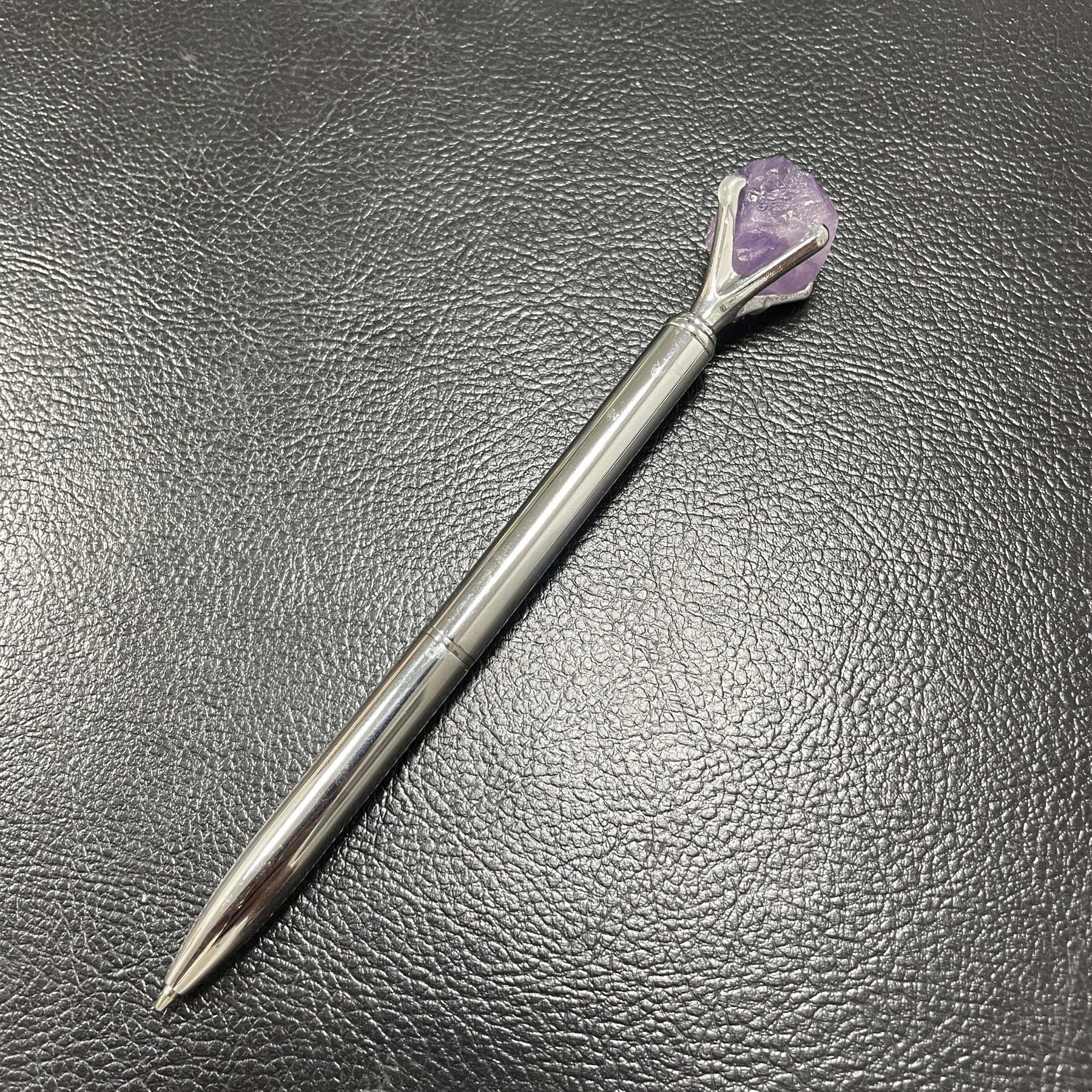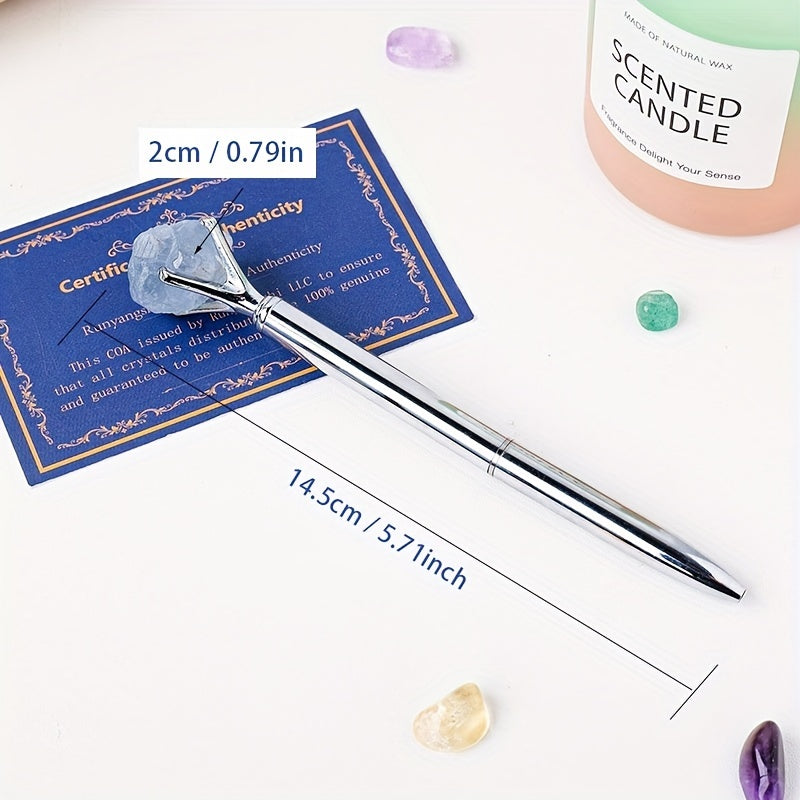 Add a touch of elegance to your writing with this raw crystal ballpoint pen. Perfect for weddings, offices, or special occasions.