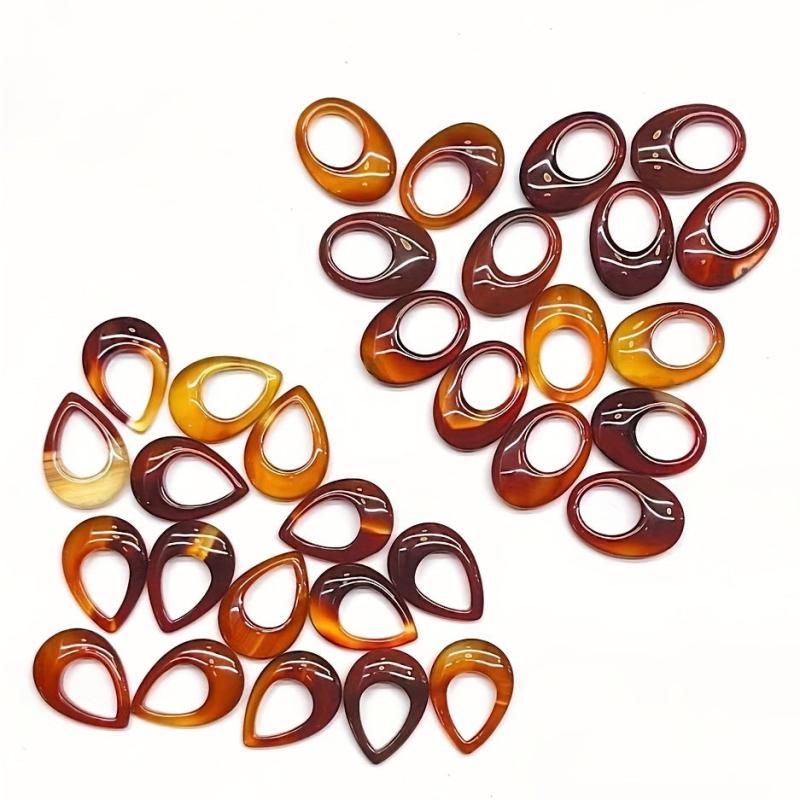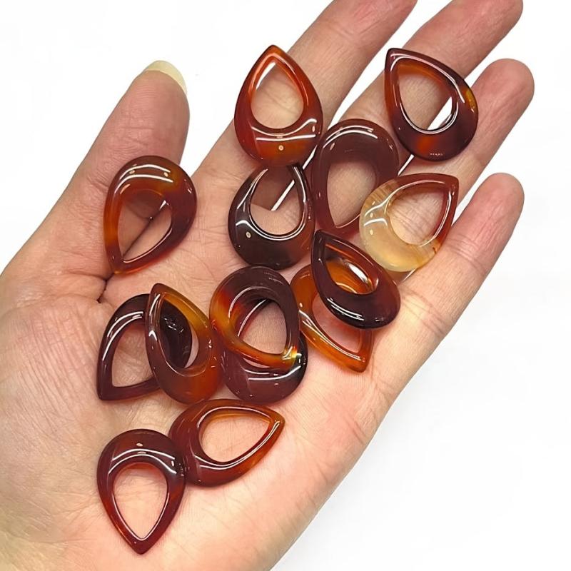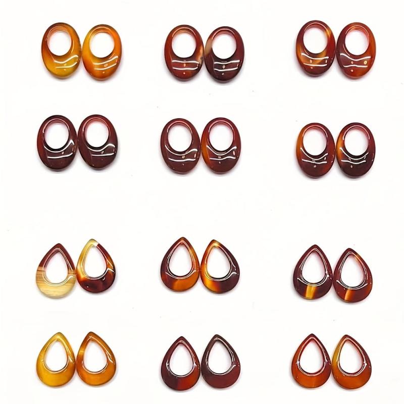 Enhance your earring collection with these retro red agate earrings featuring a geometric hollow oval water drop design. Perfect for DIY projects or to pair with bare stone accessories.
