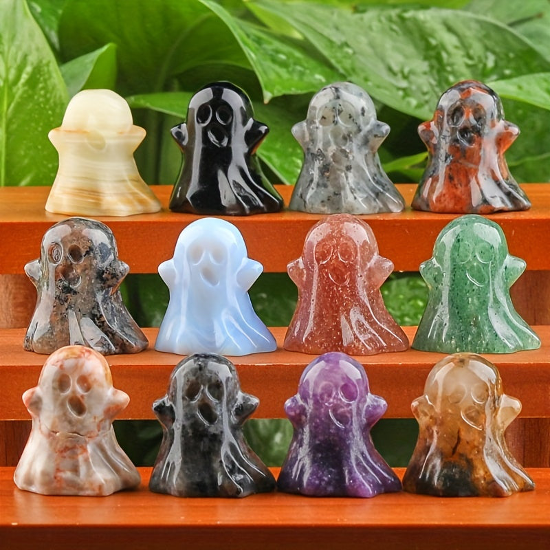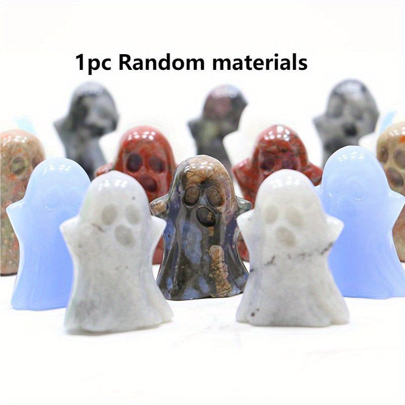 This natural crystal ghost statue is carved from rose quartz, a healing crystal that brings love and harmony. It is a perfect home decoration or Halloween gift, also a unique mineral specimen.