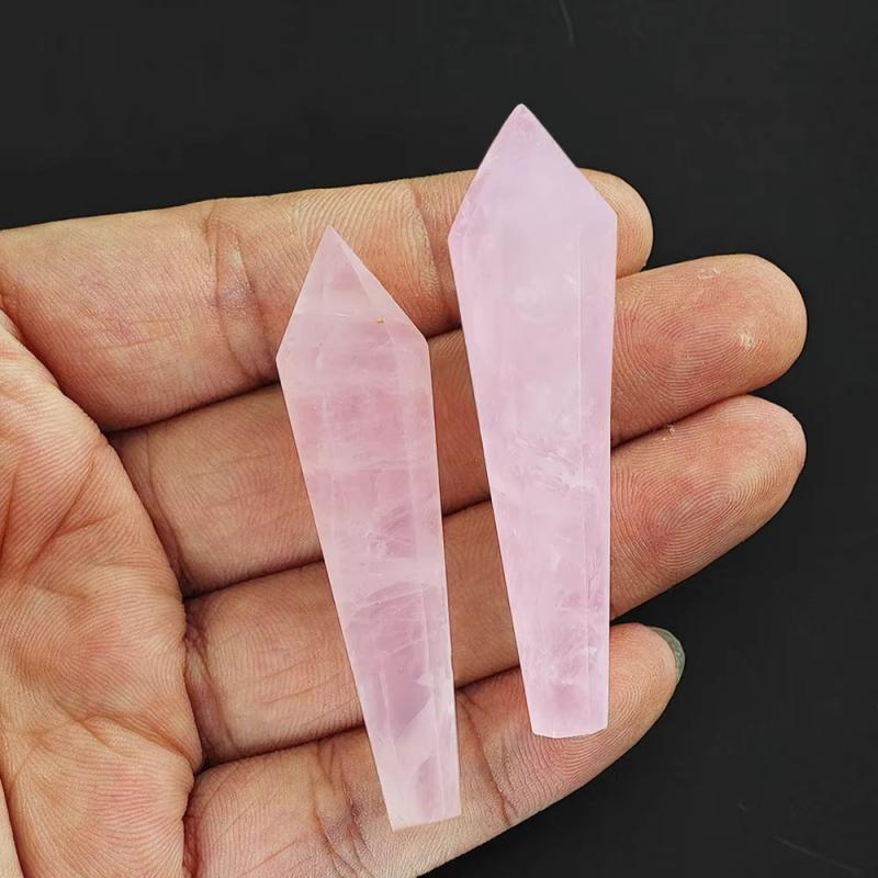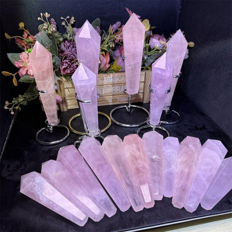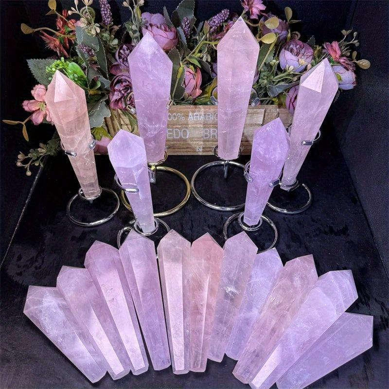 Enhance your home decor with this beautiful Rose Quartz Point Wand featuring a handle made of artificial crystal. Perfect for Christmas and New Year celebrations.