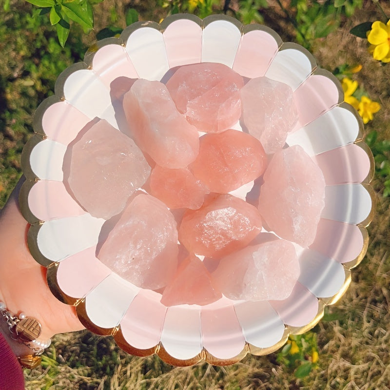 Get this bulk rose quartz rough stones for tumbling, healing, and decoration purposes. These natural crystal stones are perfect for adding to your collection.