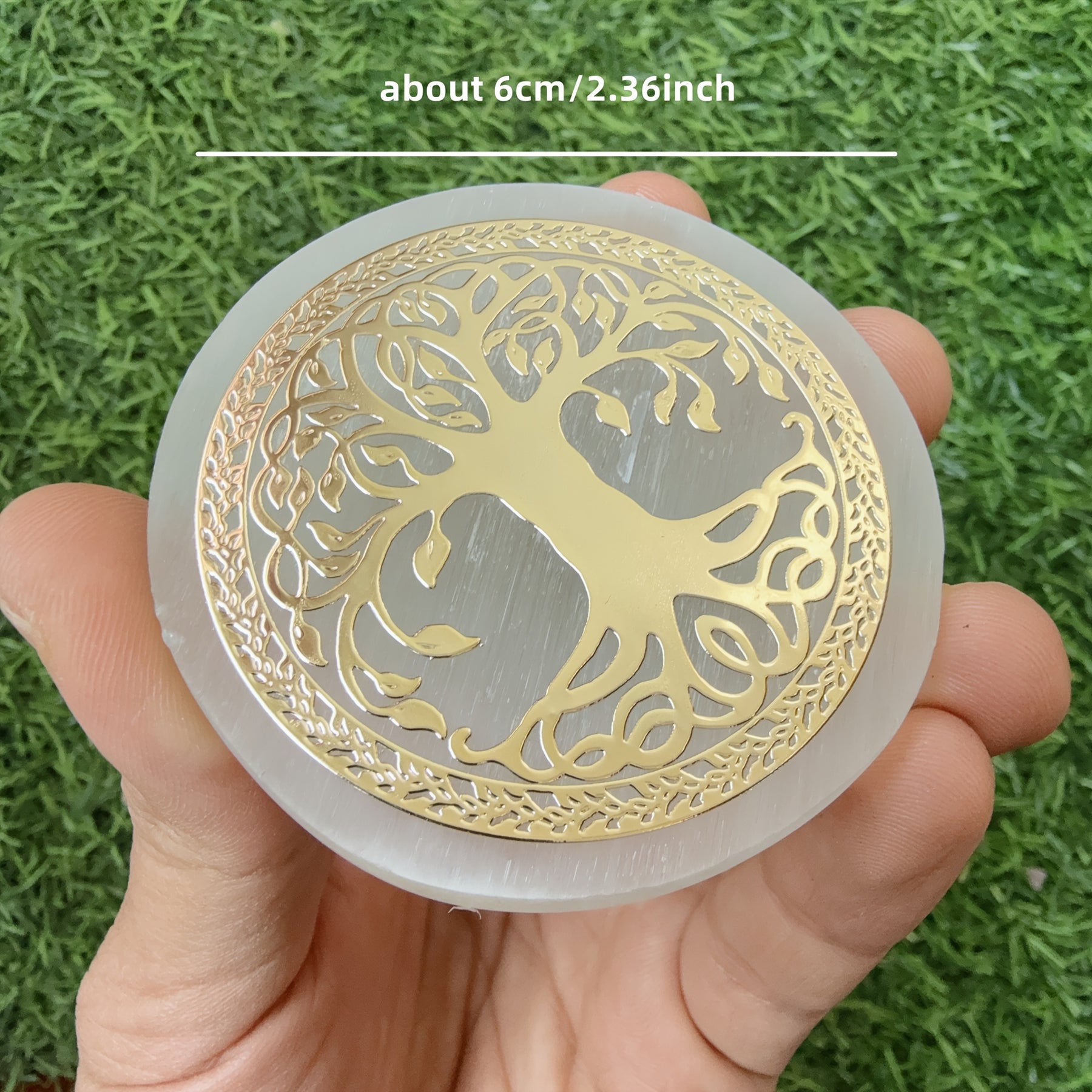 This beautiful 6cm Selenite Tree of Life plate is perfect for interior decoration. The intricate Tree of Life engraving adds a touch of elegance to any space. Makes a unique and thoughtful gift for any occasion.