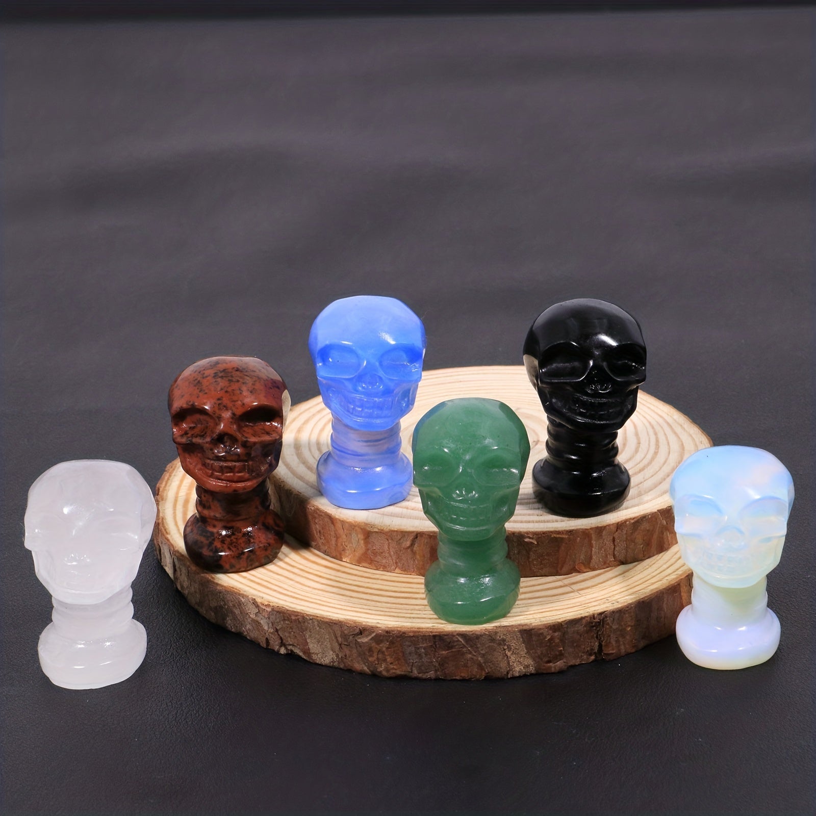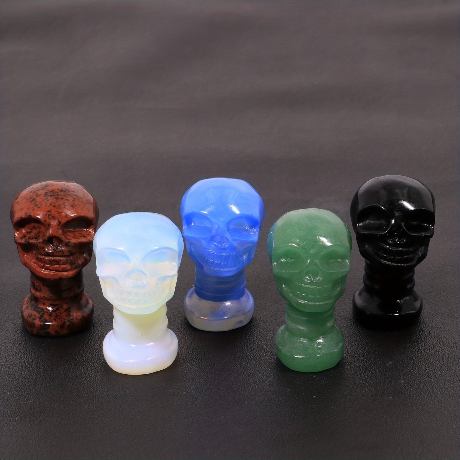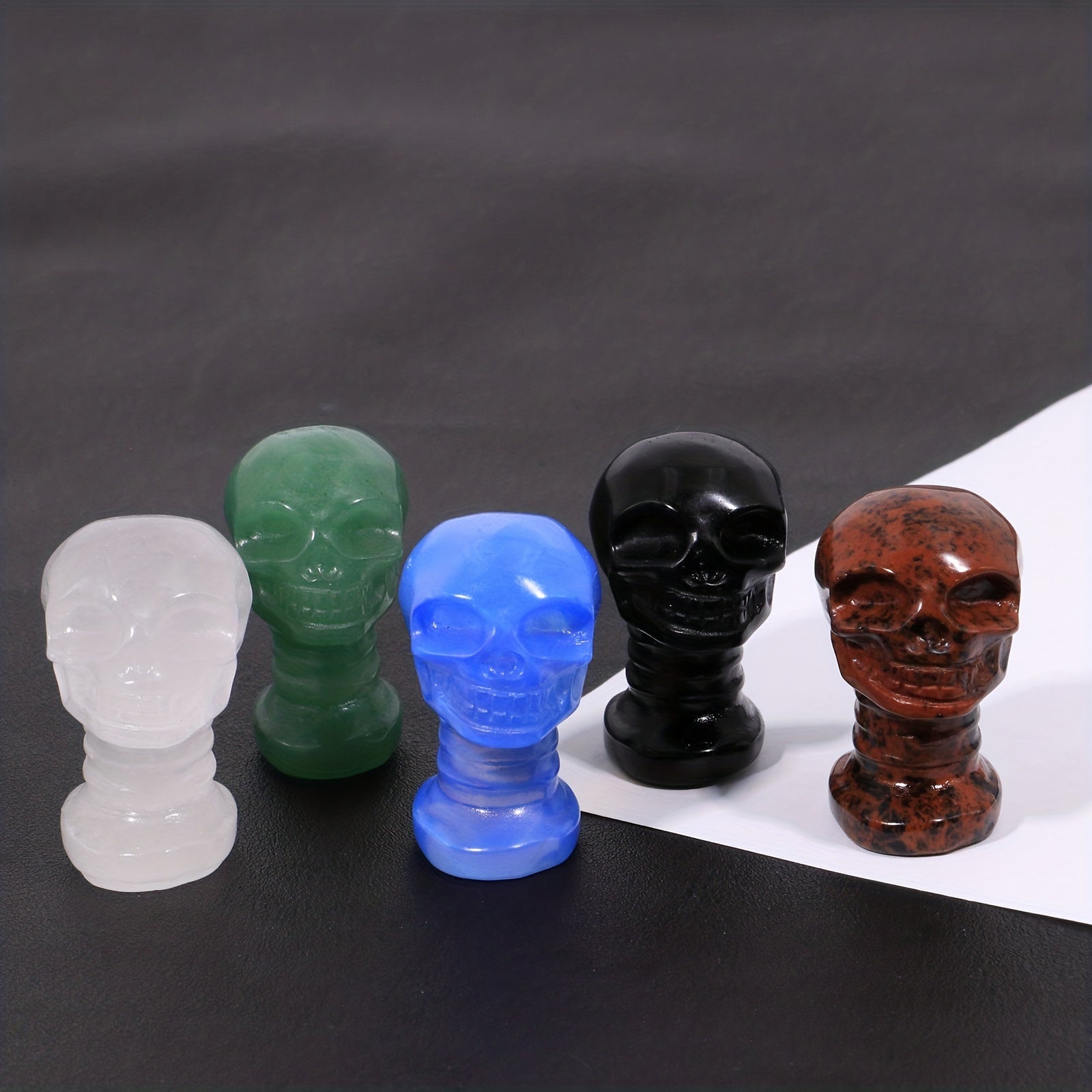 Add a touch of spookiness to your space with this small skull decoration. Made of gemstone, it's perfect for Halloween or as an office gift. The healing crystal properties add a unique touch to any room.
