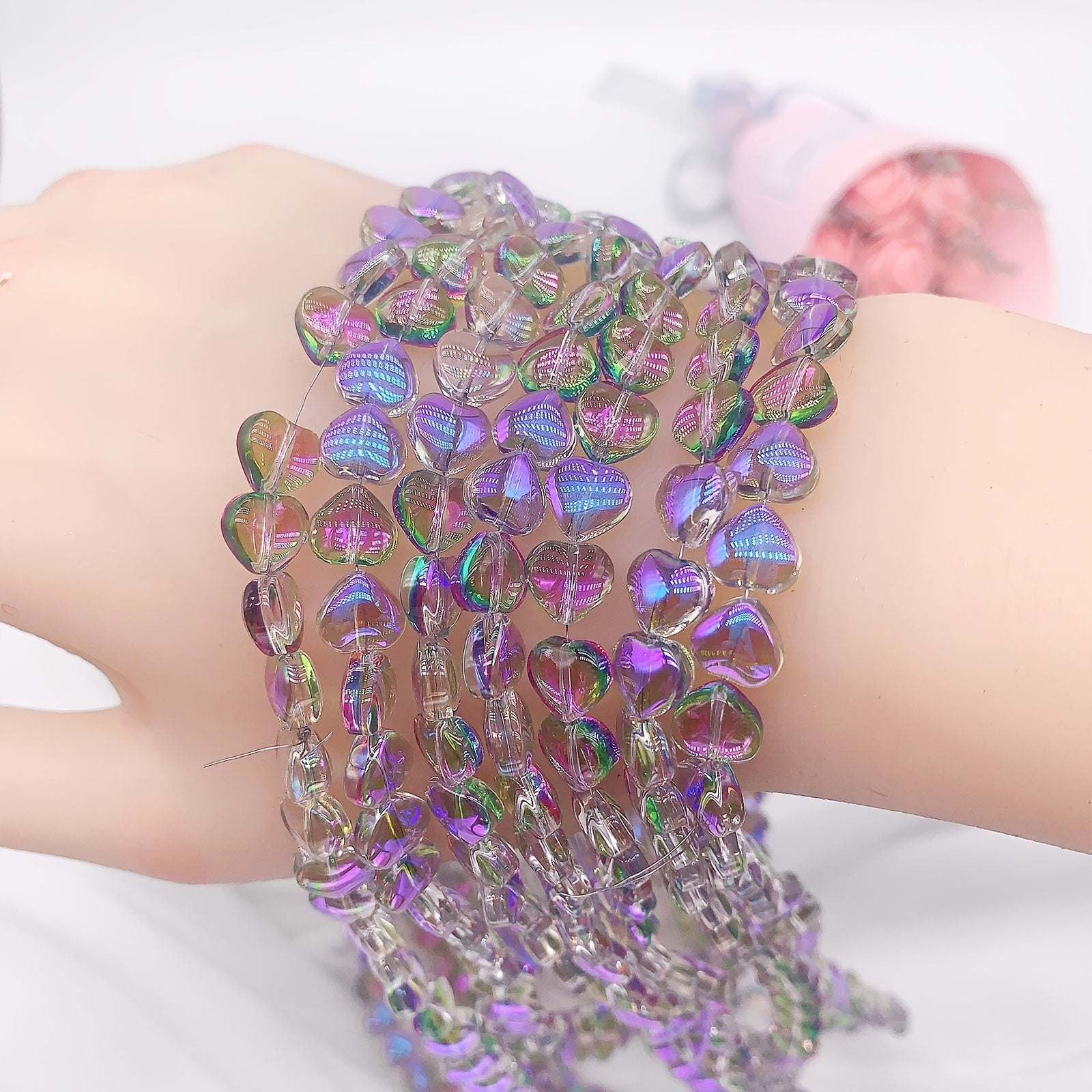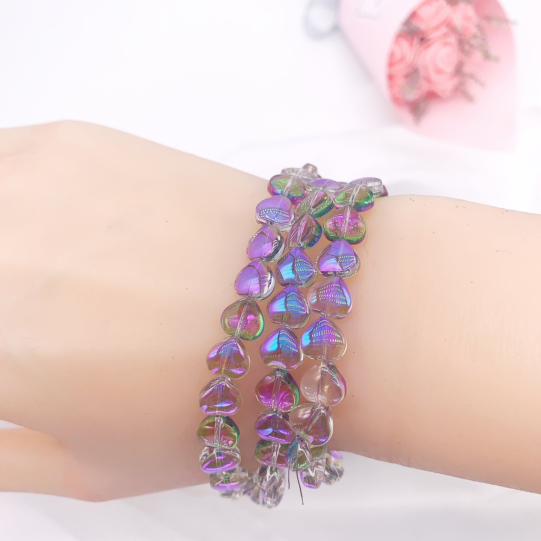 Enhance your bracelet making with this set of 95pcs Sparkle Purple Heart Crystal Glass Loose Beads. Perfect for adding a touch of elegance to your creations.