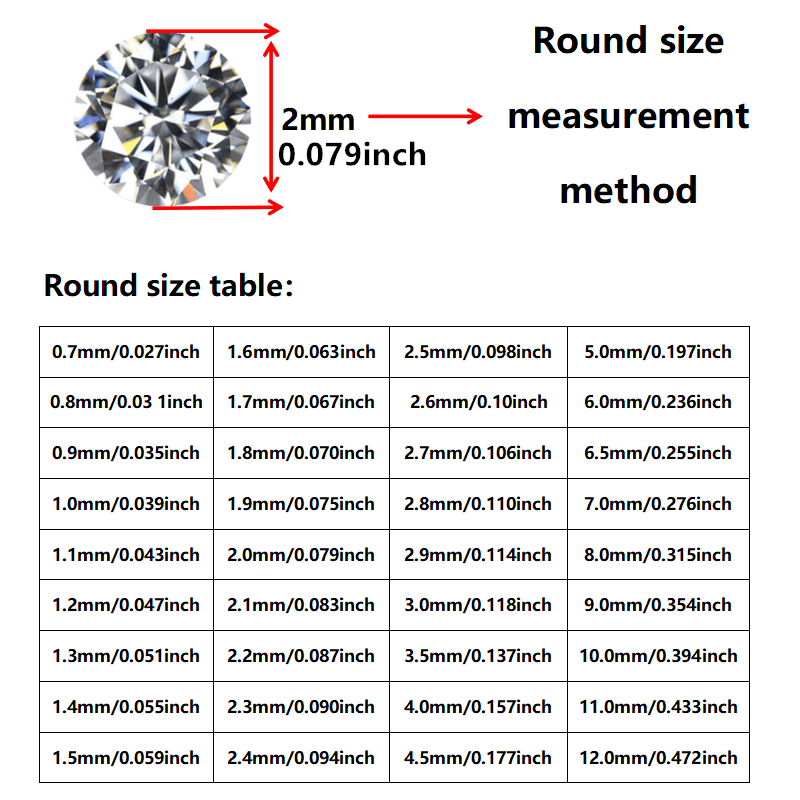 These synthetic moissanite stones feature a round brilliant cut with eight side faceting. Available in sizes from 0.8mm to 3.0mm, they offer VVS1 clarity for a stunning sparkle.