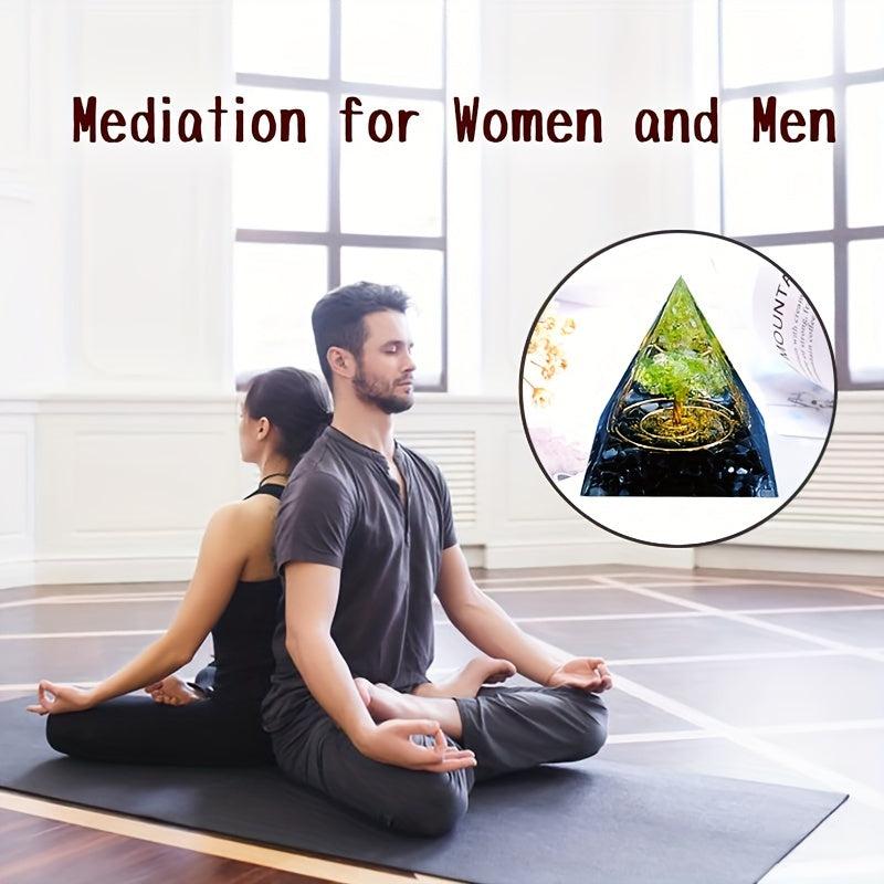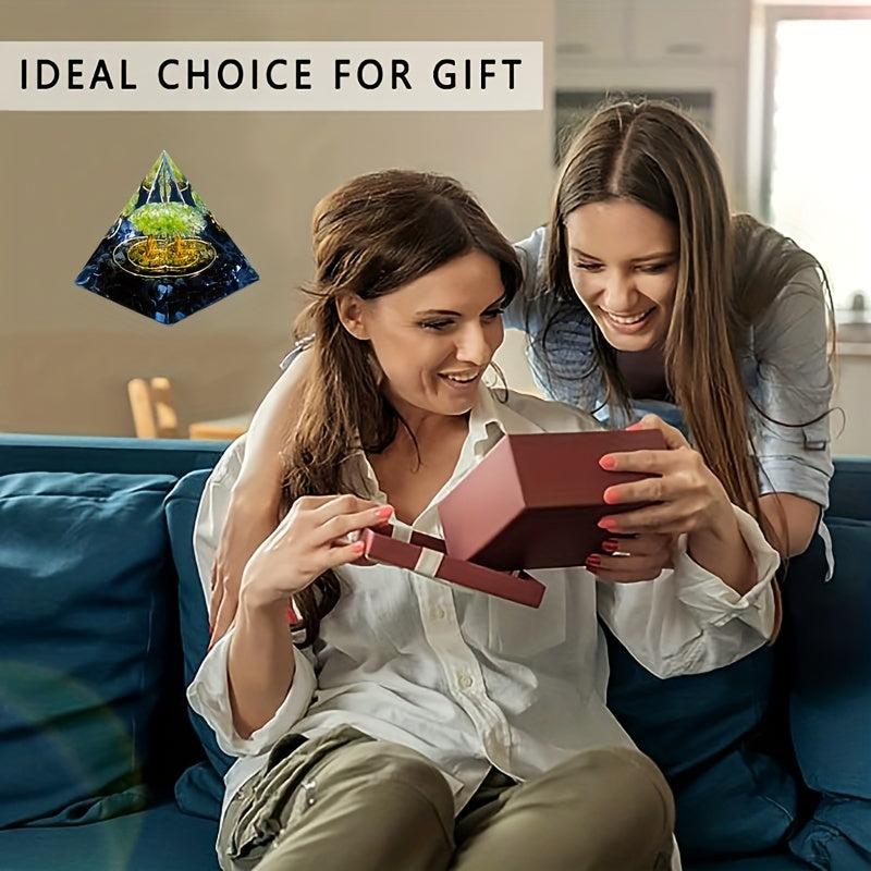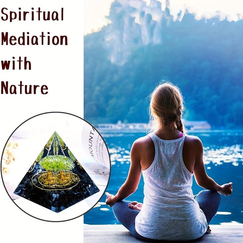 Enhance your space with this beautiful Tree of Life orgonite pyramid crafted with chakra reiki energy. Perfect for yoga lovers and office decor.