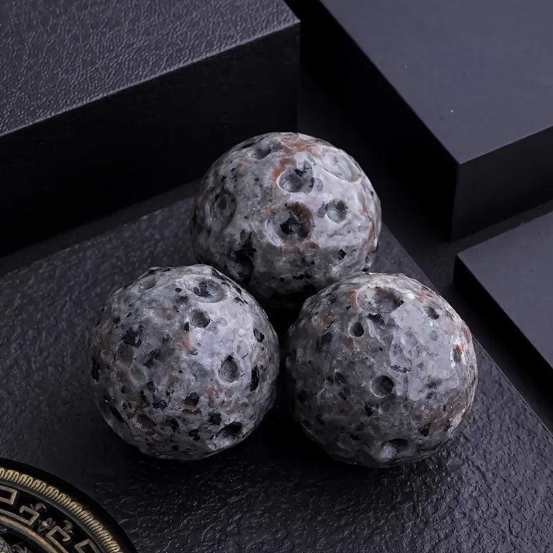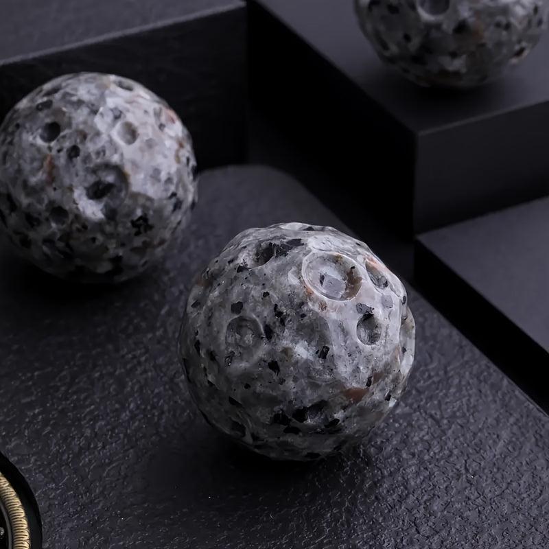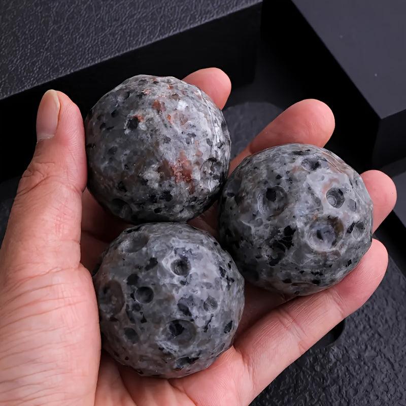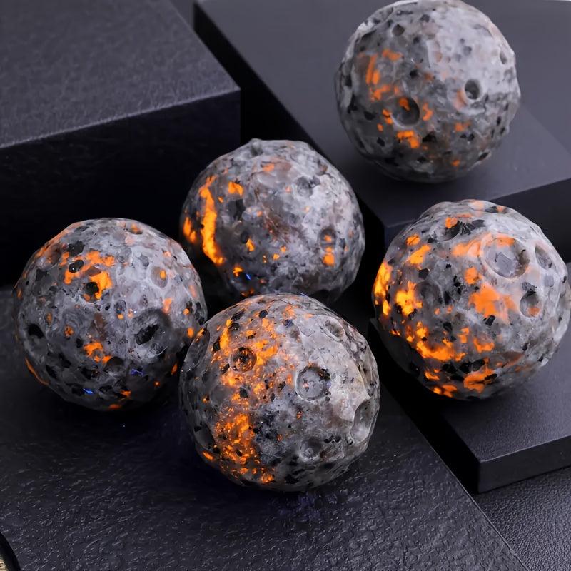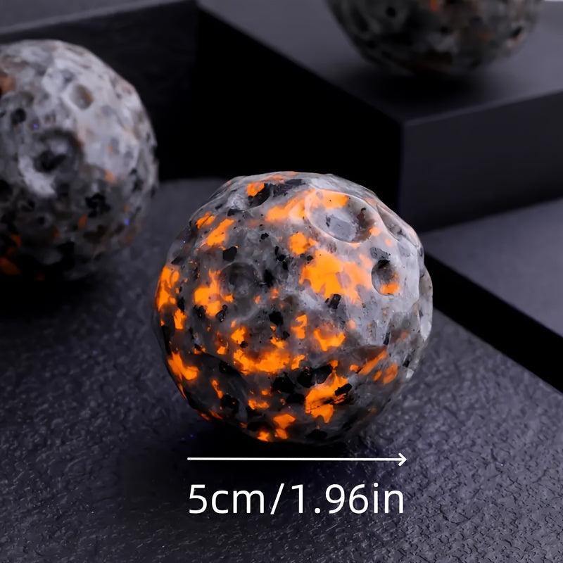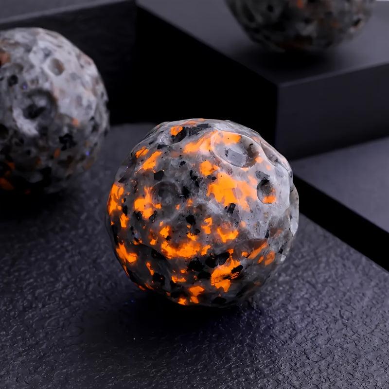 Discover the magic of Yooperlite Moon Spheres with UV reactive sodalite stones. Handcrafted crystal balls with unique flame effect for a bohemian style.