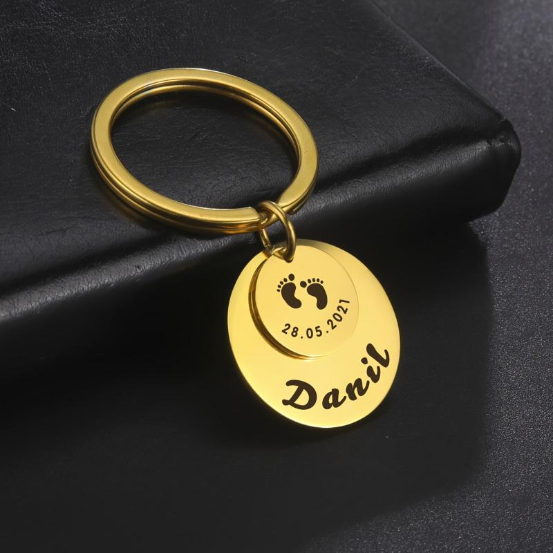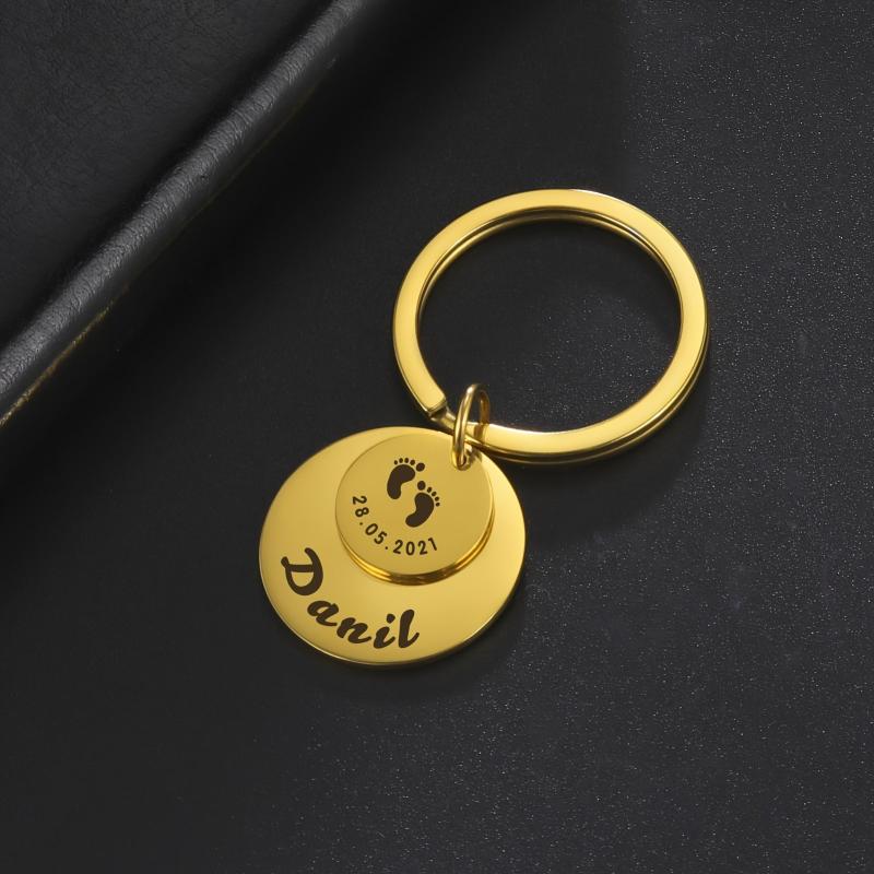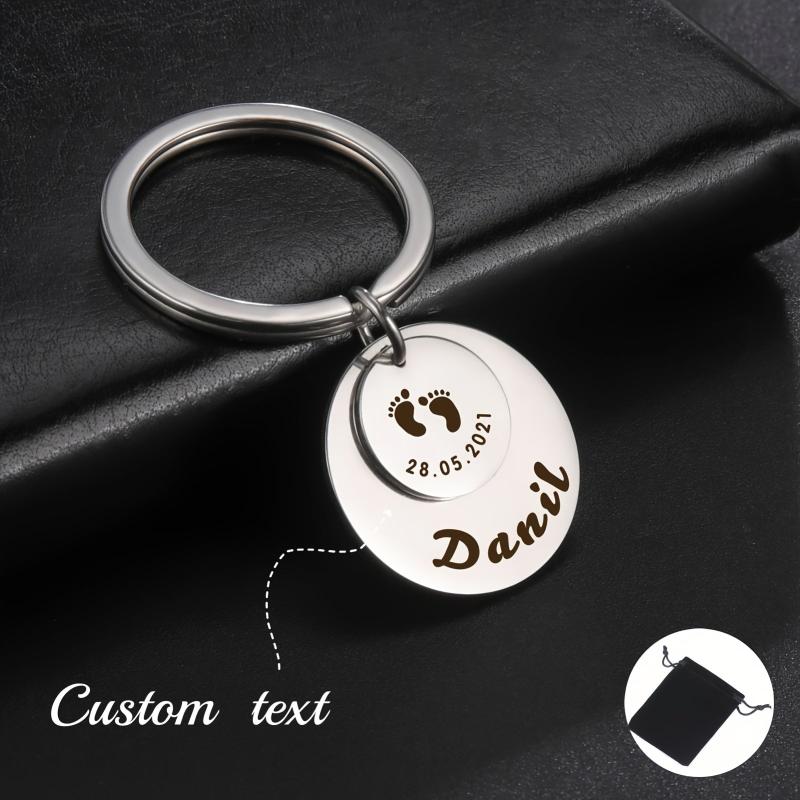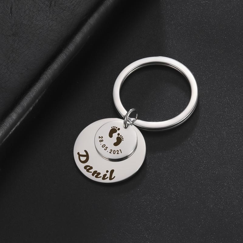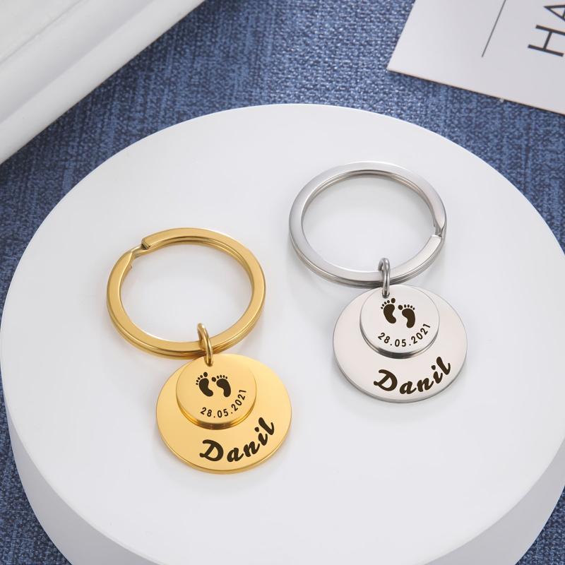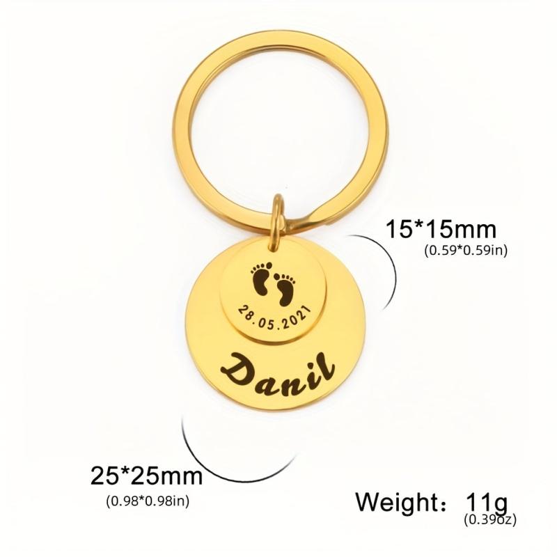 Eueavan Personalisierter Edelstahlschlüsselkette mit Fußabdruck & Name