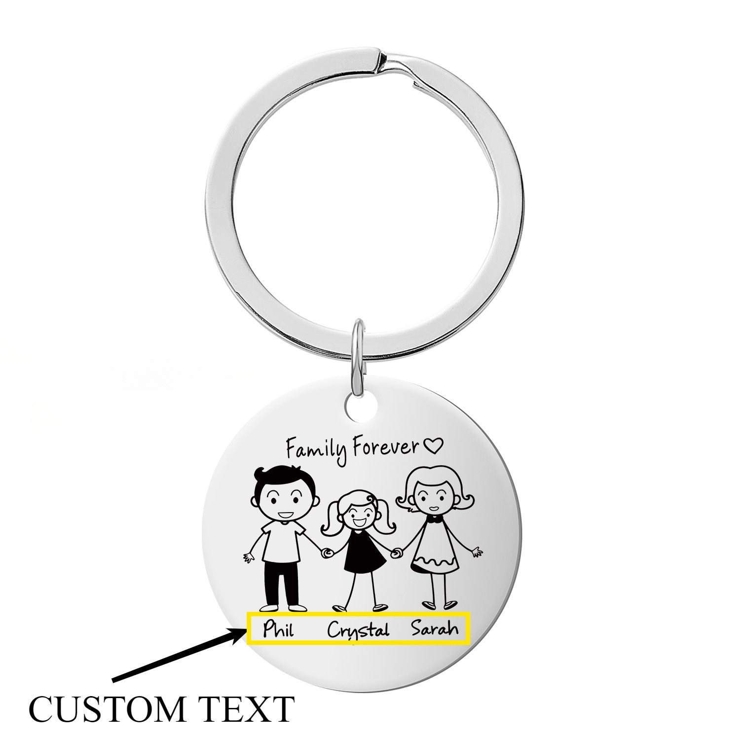 Engraved Stainless Steel Keychain Family Forever Personalized Gift