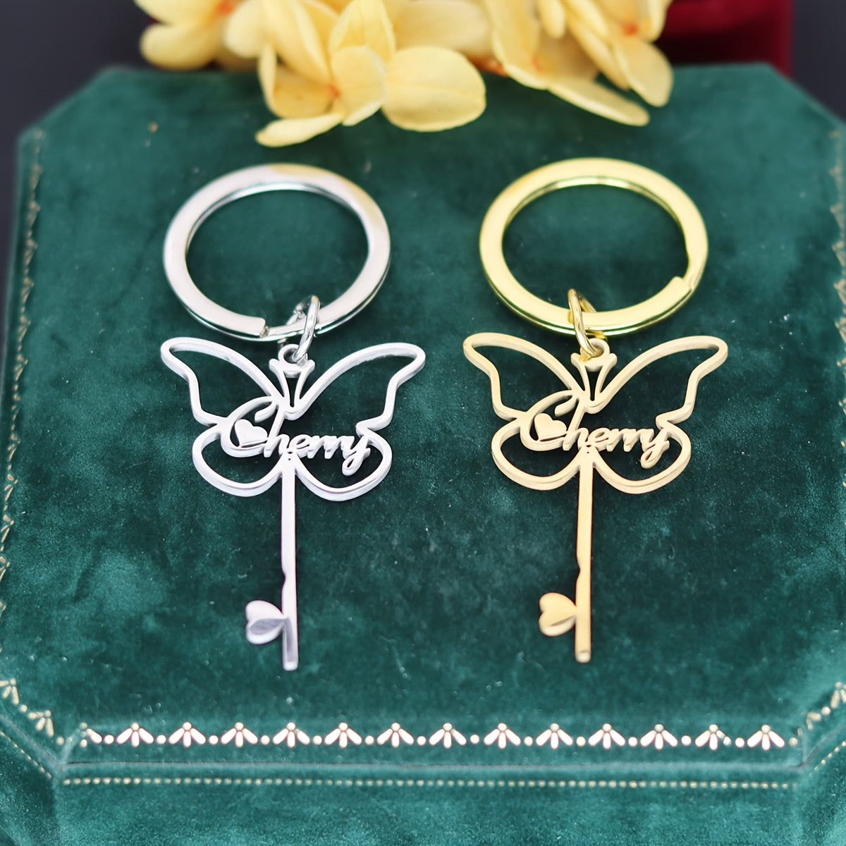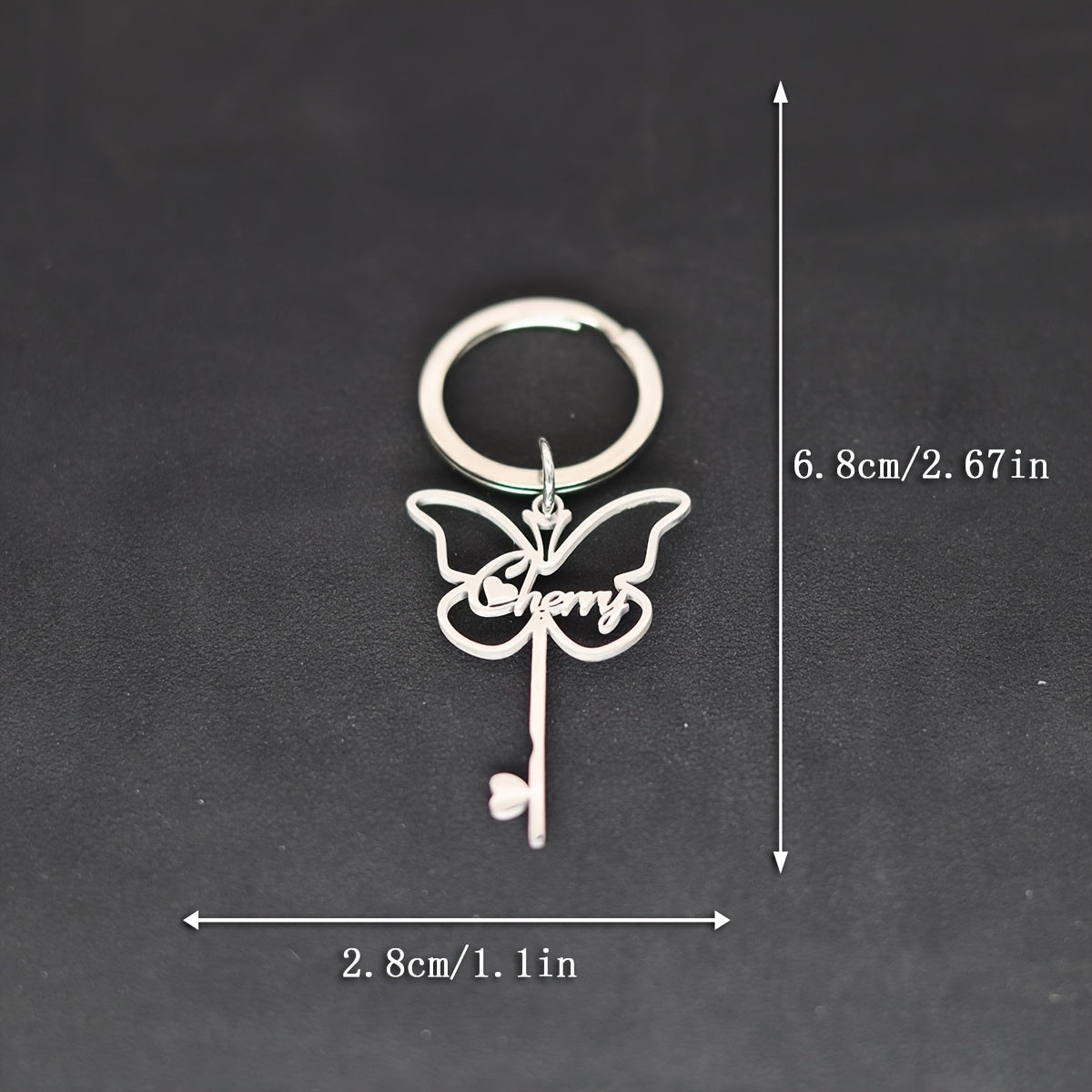 Personalized Stainless Steel Butterfly Keychain with Cherry Inscription