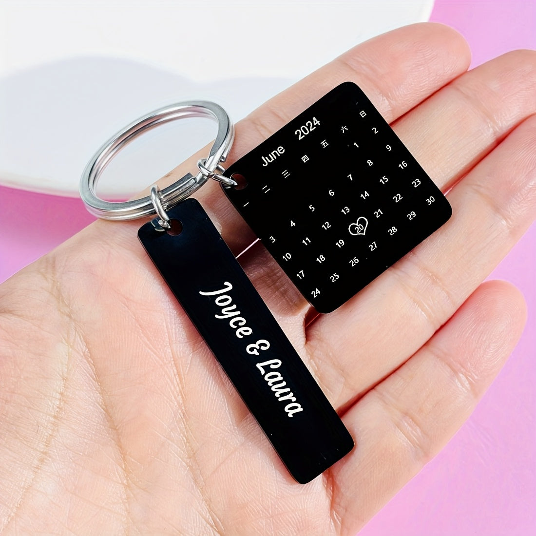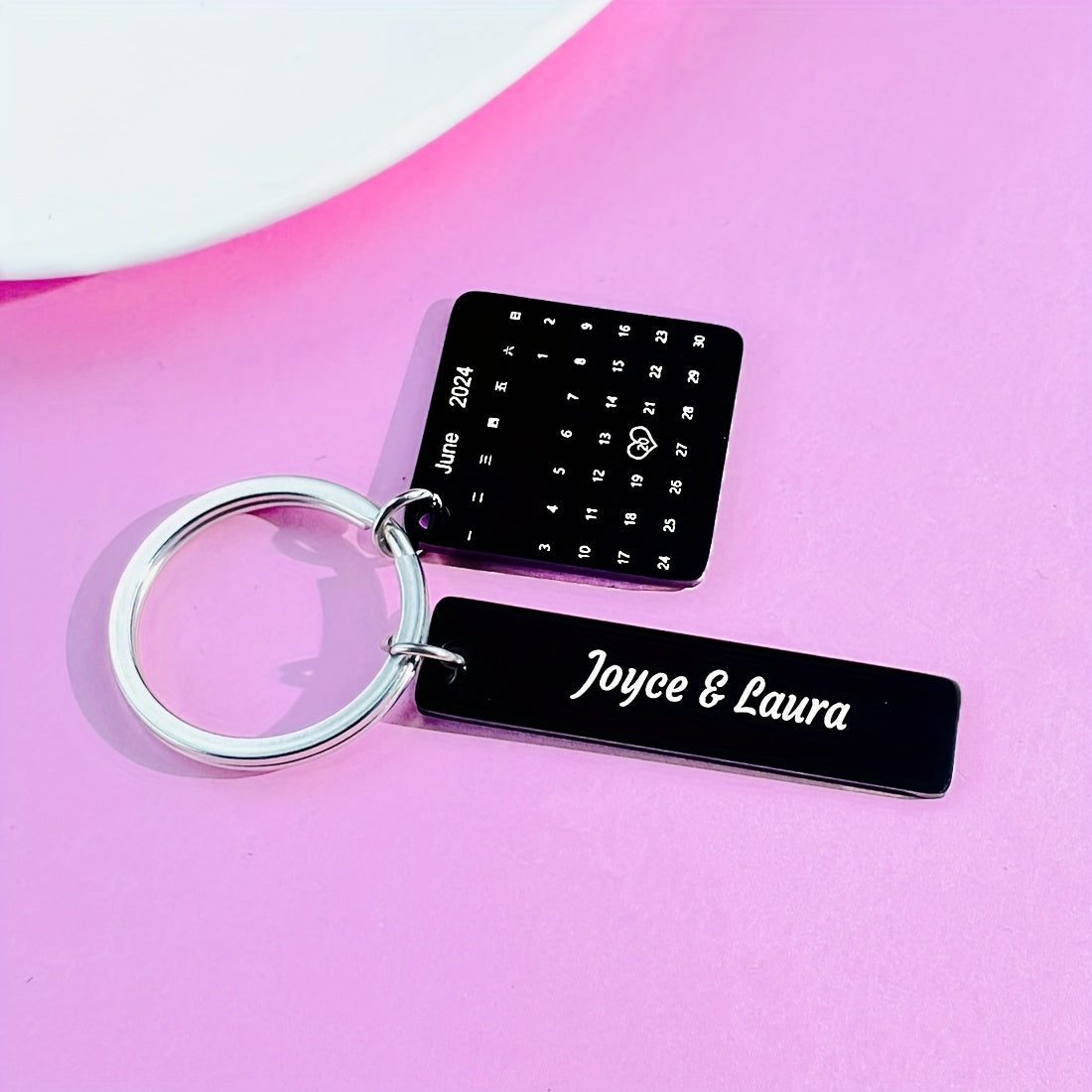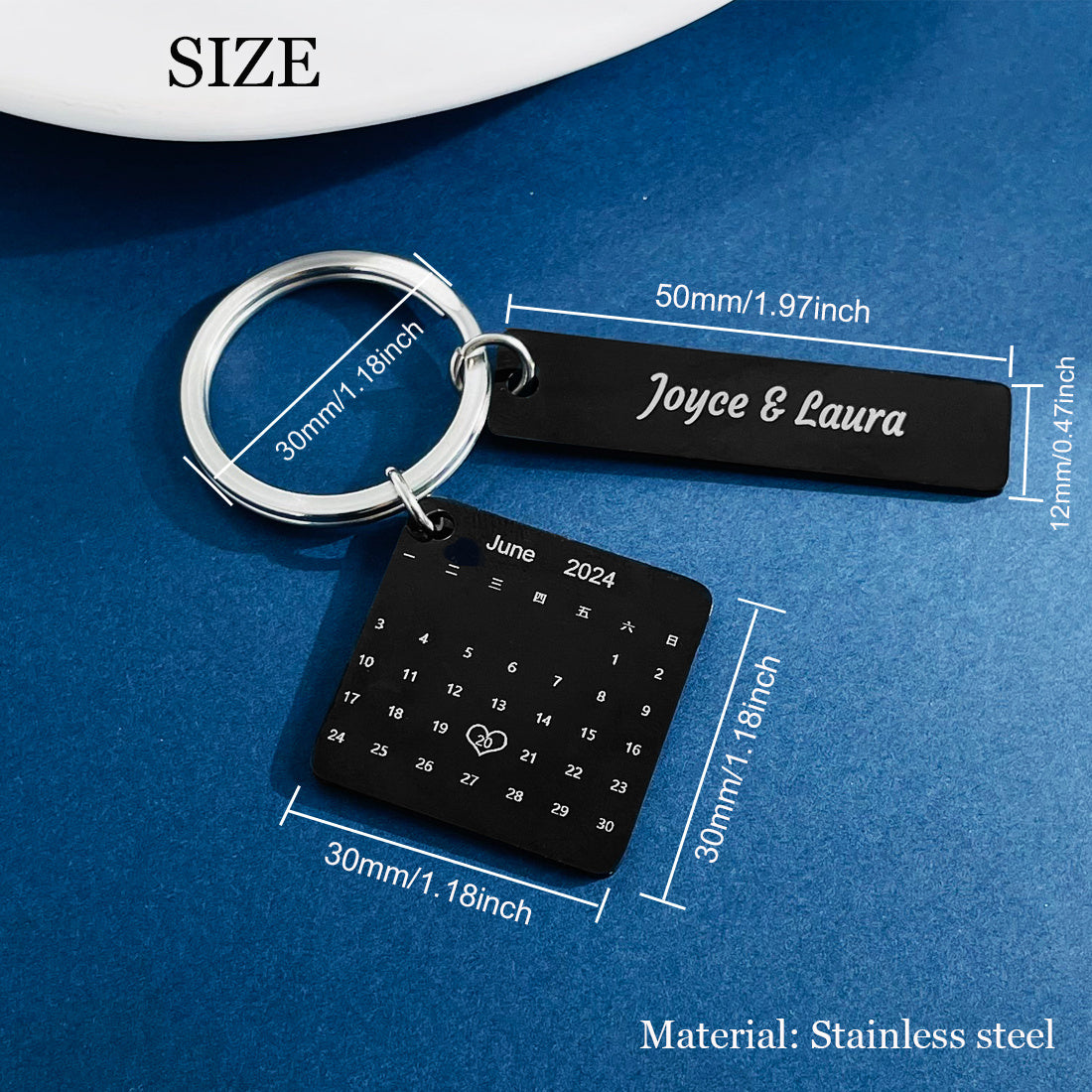 Personalized Stainless Steel Calendar Keychain Custom Engraved Date with Names