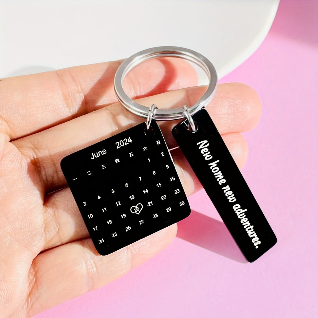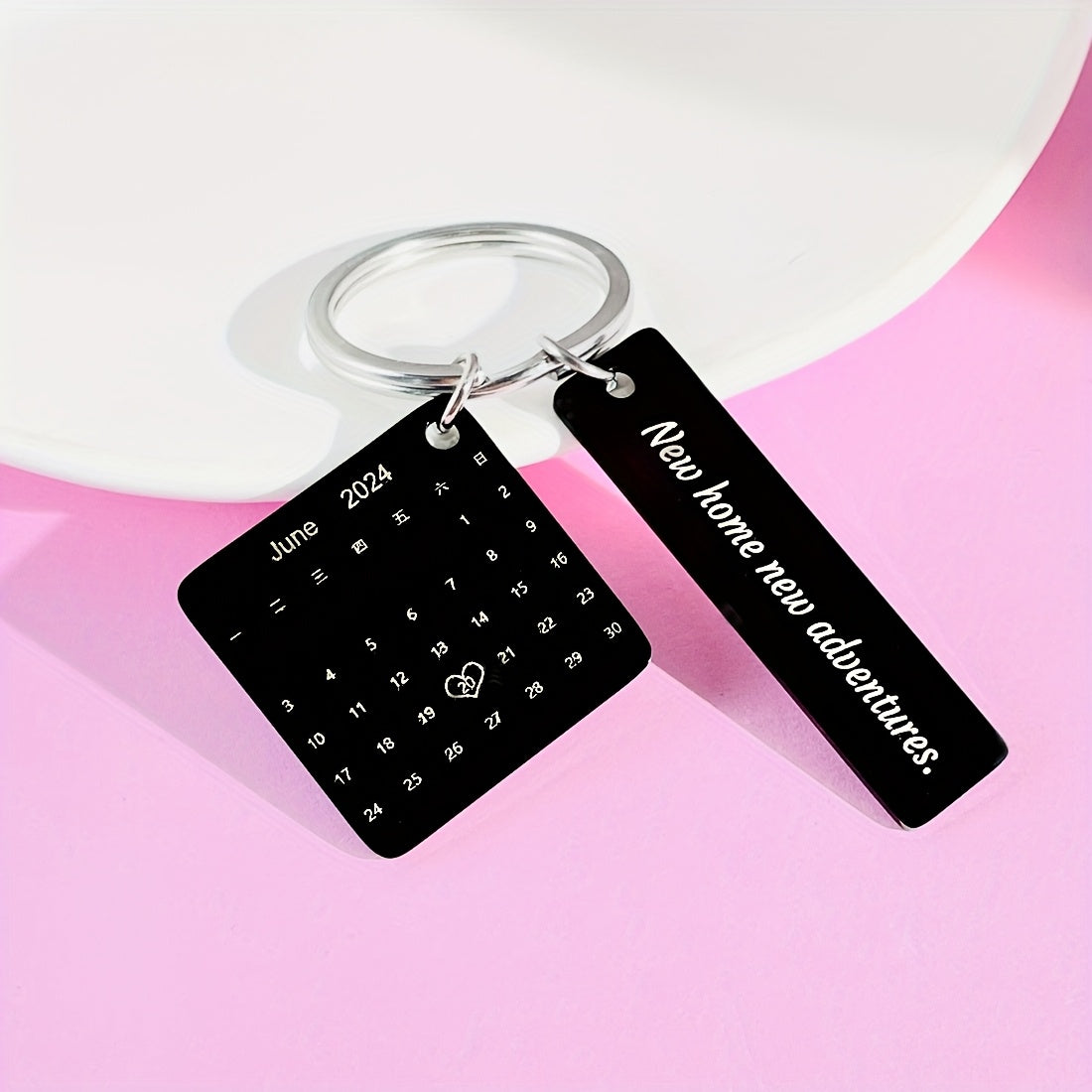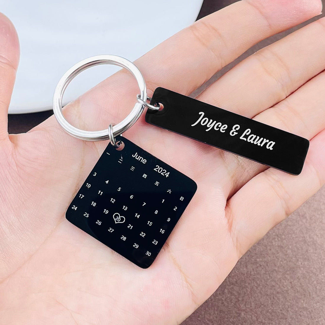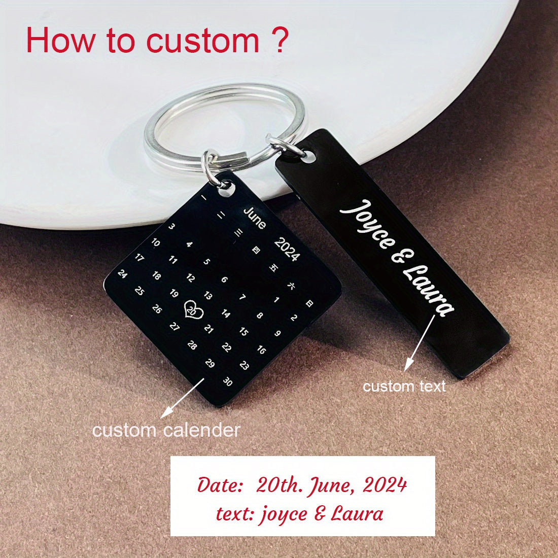 Personalized Stainless Steel Calendar Keychain Custom Engraved Date with Names