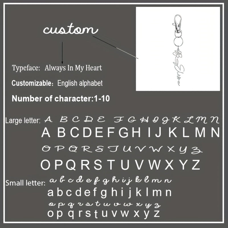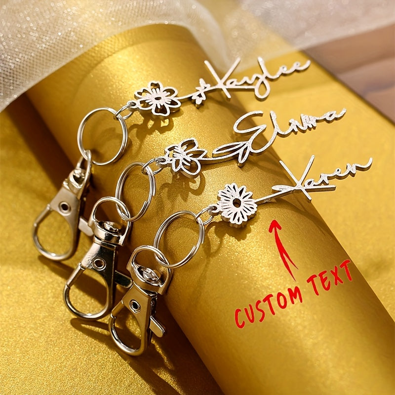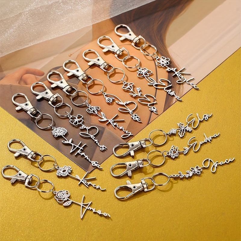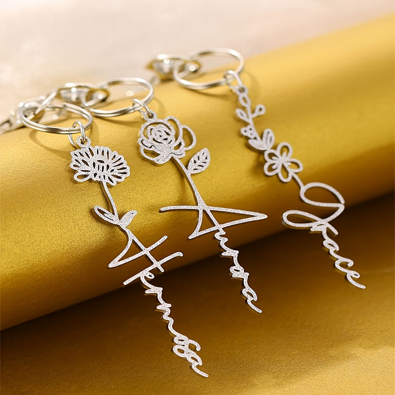 Dieser benutzerdefinierte Schlüsselbund verfügt über ein Edelstahl -Design mit einem personalisierten Namen und einem Geburtsblumenzarm. Das perfekte Geschenk für sie oder ihn ist jeder Schlüsselbund mit einem Briefzauber und einem Gänseblümchen, der ihren Geburtsmonat symbolisiert.