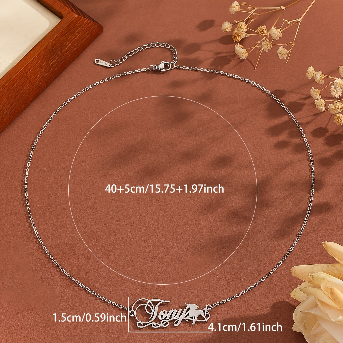 Dieser benutzerdefinierte Name Pendell Halskette verfügt über ein magisches Einhorn -Design, das perfekt für Männer und Frauen ist. Es besteht aus hochwertigem Edelstahl und macht ein nachdenkliches Geschenk für jeden Anlass.
