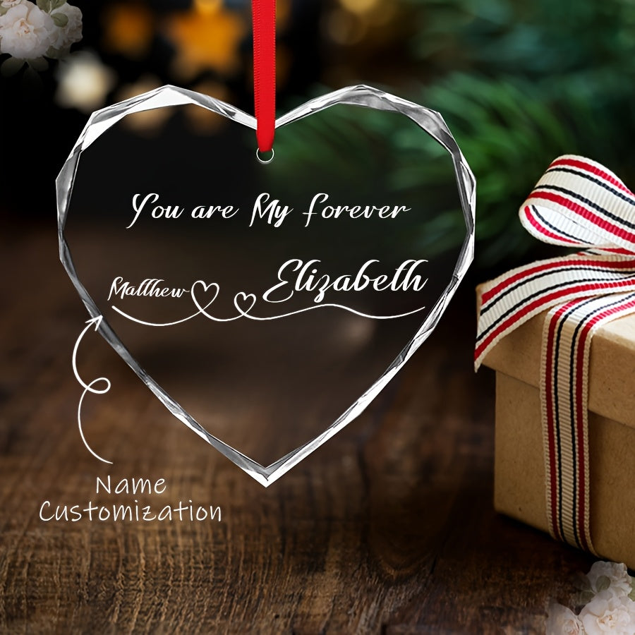 Dieser schöne Kristallherzanhänger ist ein perfektes Geschenk für Paare. Mit Namen angepasst, fügt es der Wohnkultur eine persönliche Note hinzu. Das transparente Glasdesign ist elegant und zeitlos.