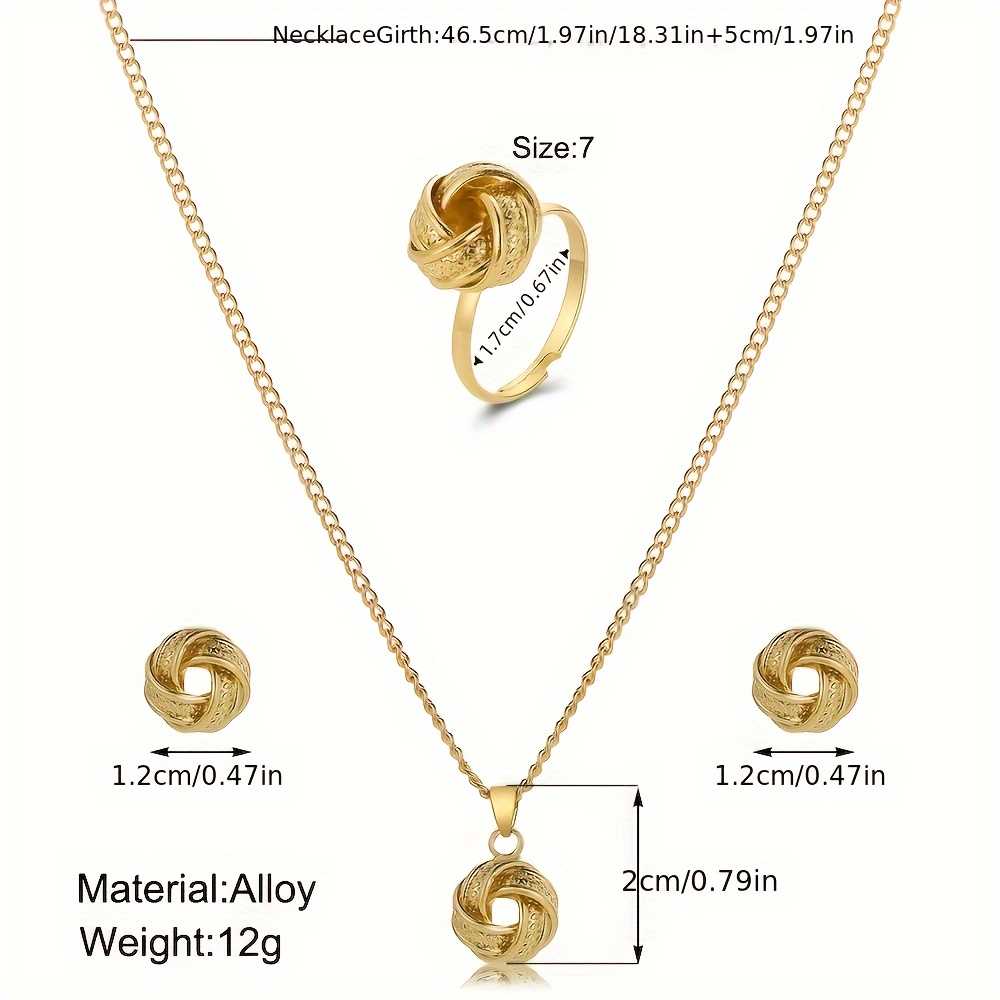 Vergoldetes 4-teiliges Schmuckset für Damen mit elegantem runden Knotendesign