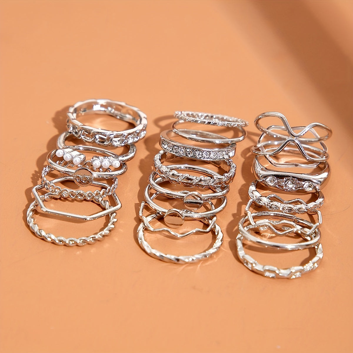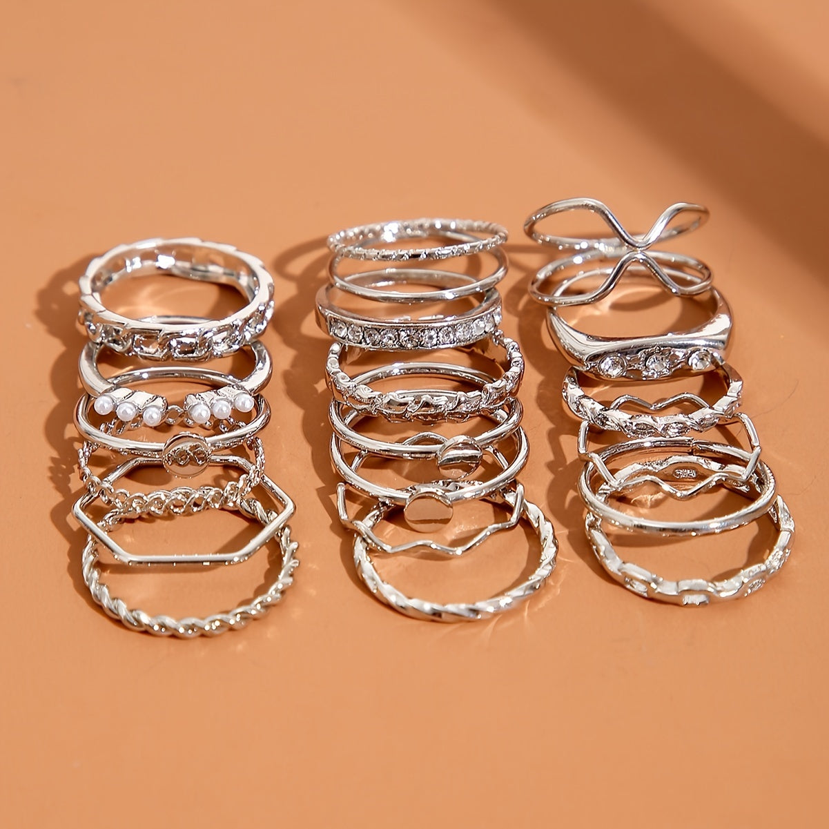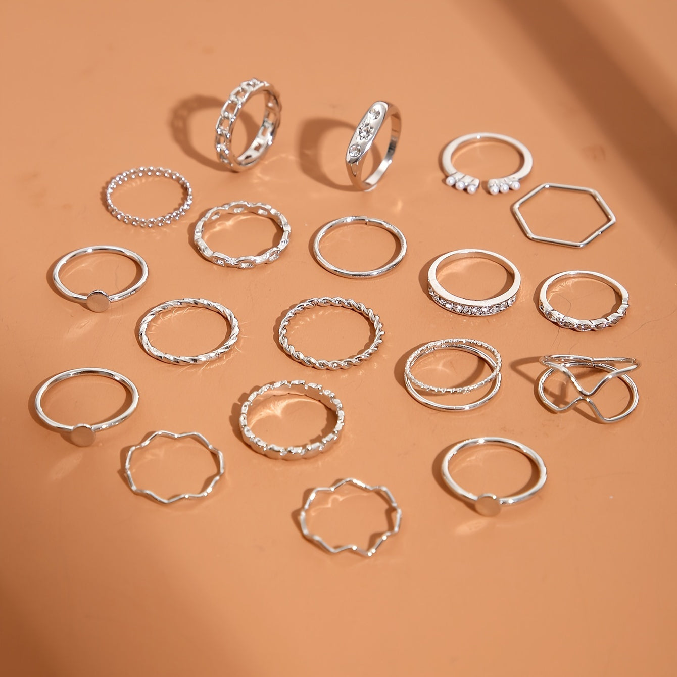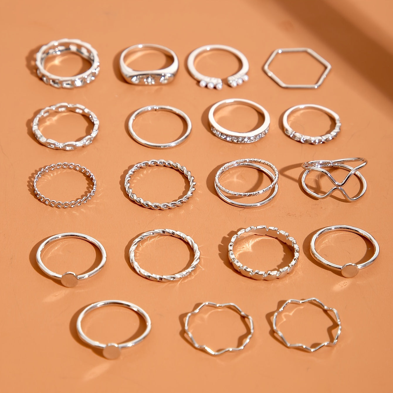 20 Stylish Retro Geometric Chain Water Drill Bling Rings