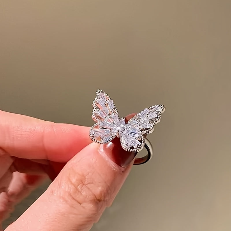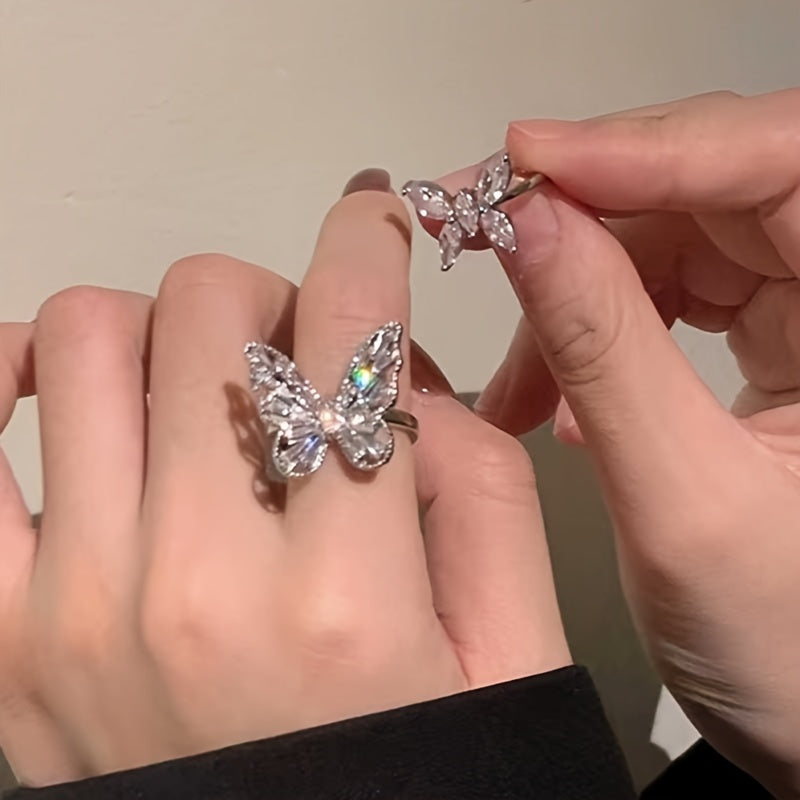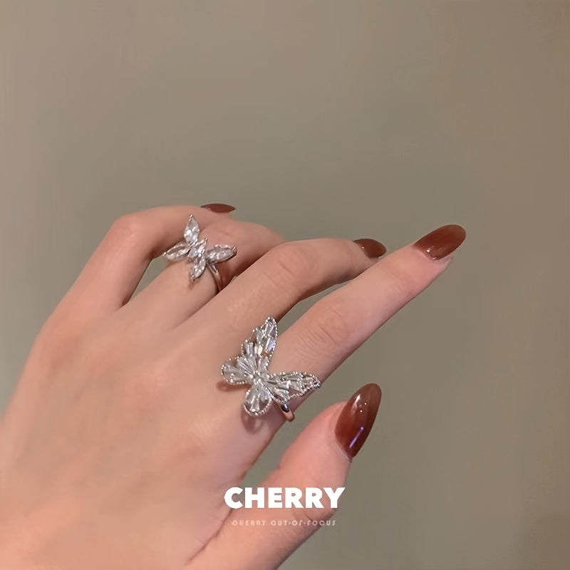 2pcs Butterfly Zirconia Ring Women's Adjustable Index Ring
