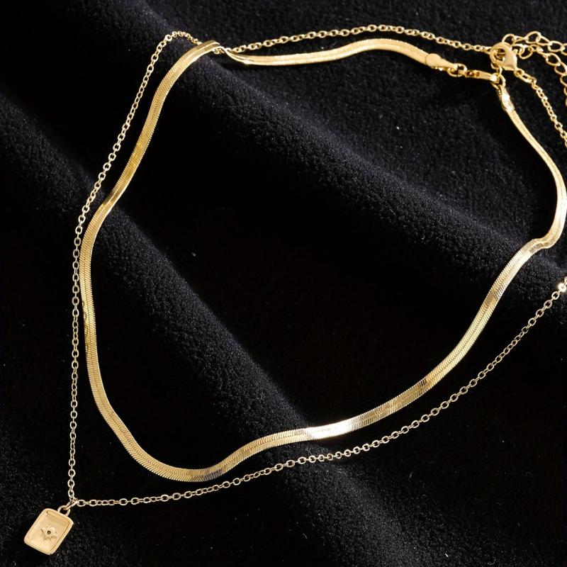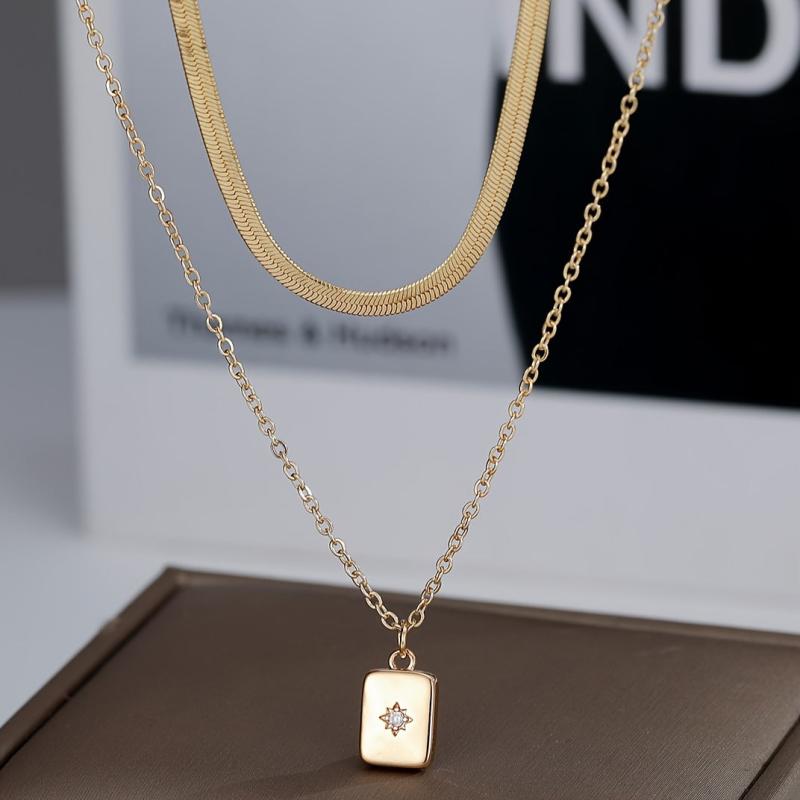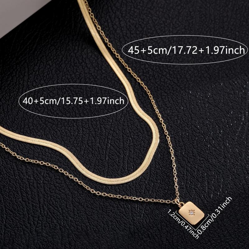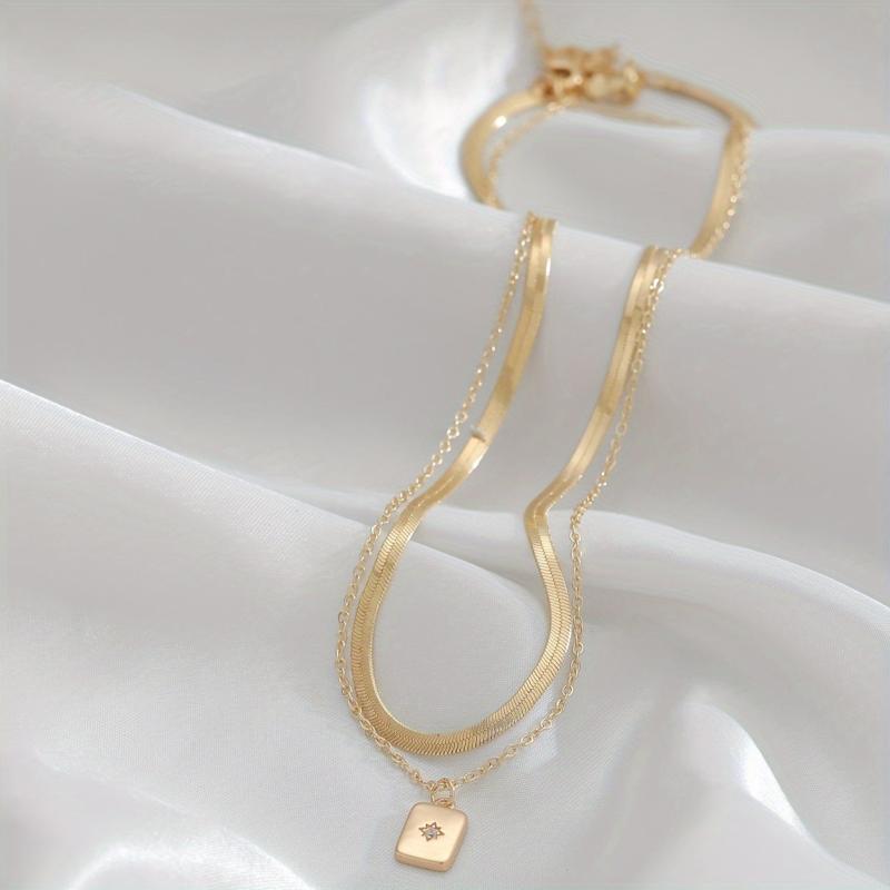 2pcs Golden Wire Zirconia Layered Necklace Set