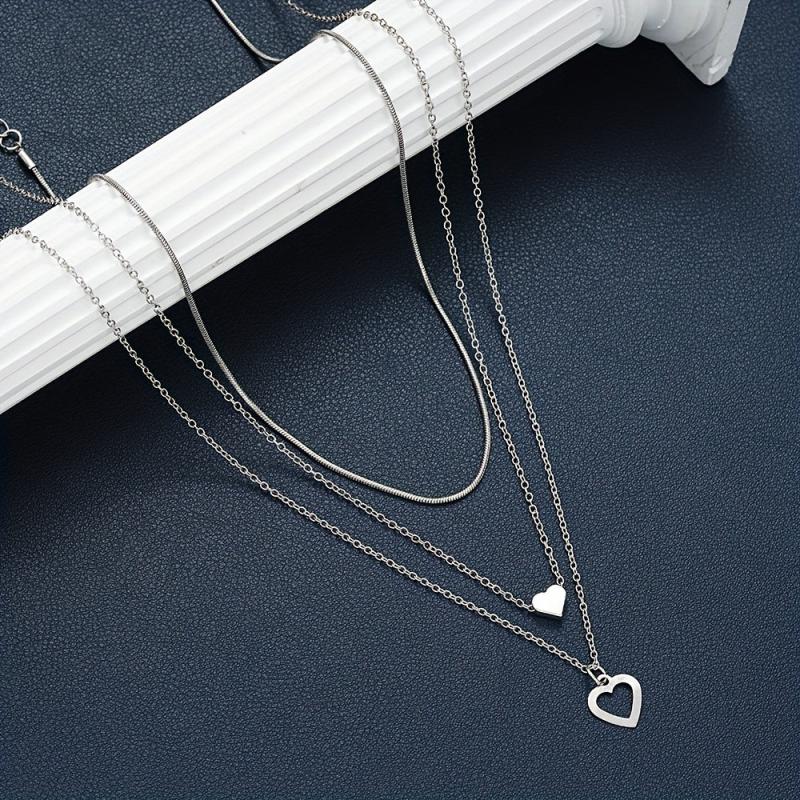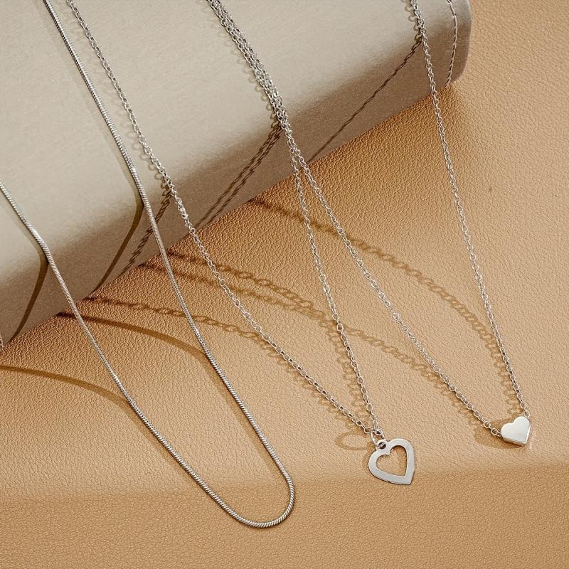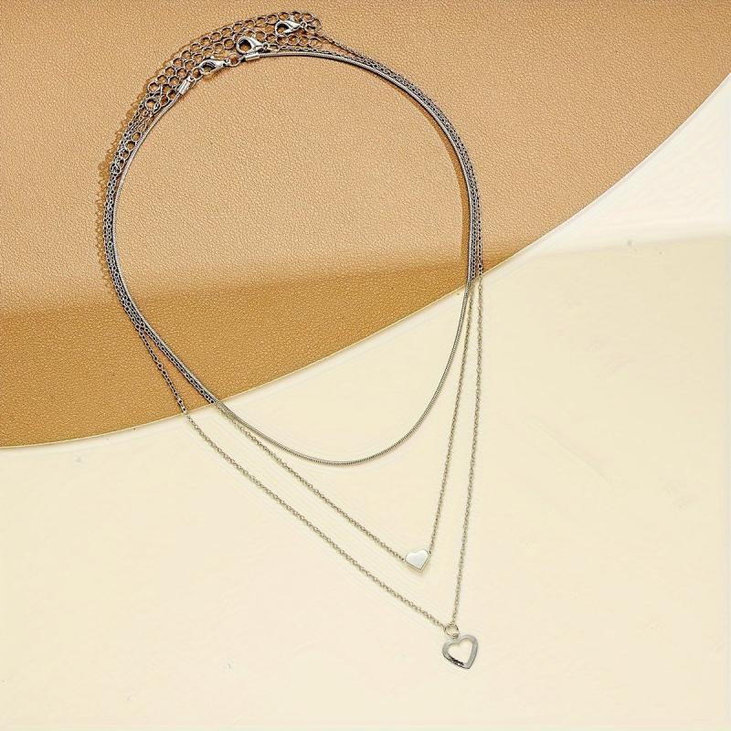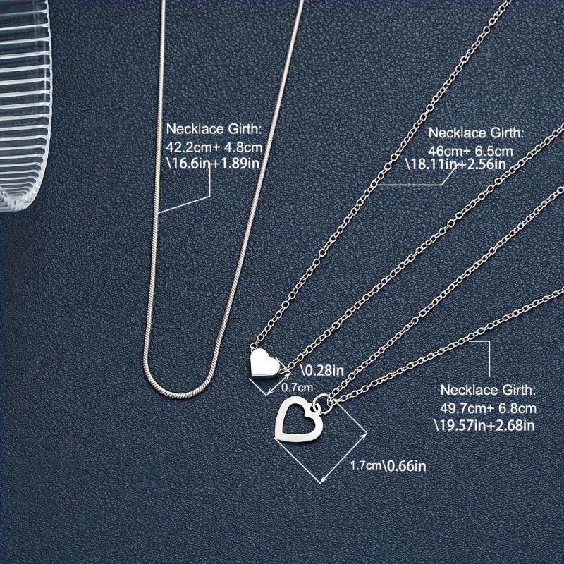 Elevate your style with this 3-piece set of layered heart pendant necklaces. Made from zinc alloy, these chains have no plating and are perfect for daily wear or vacation outfits. They also make a great gift for someone special.