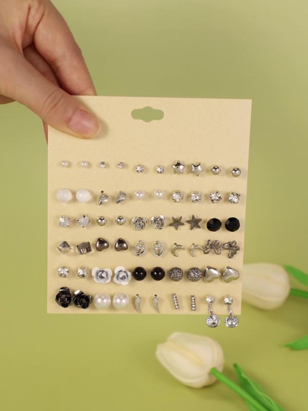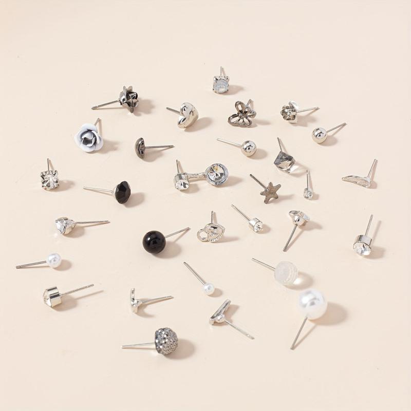 30 Pairs Women's Ear Piercing Set Flower Love Butterfly Daily Jewelry Gift
