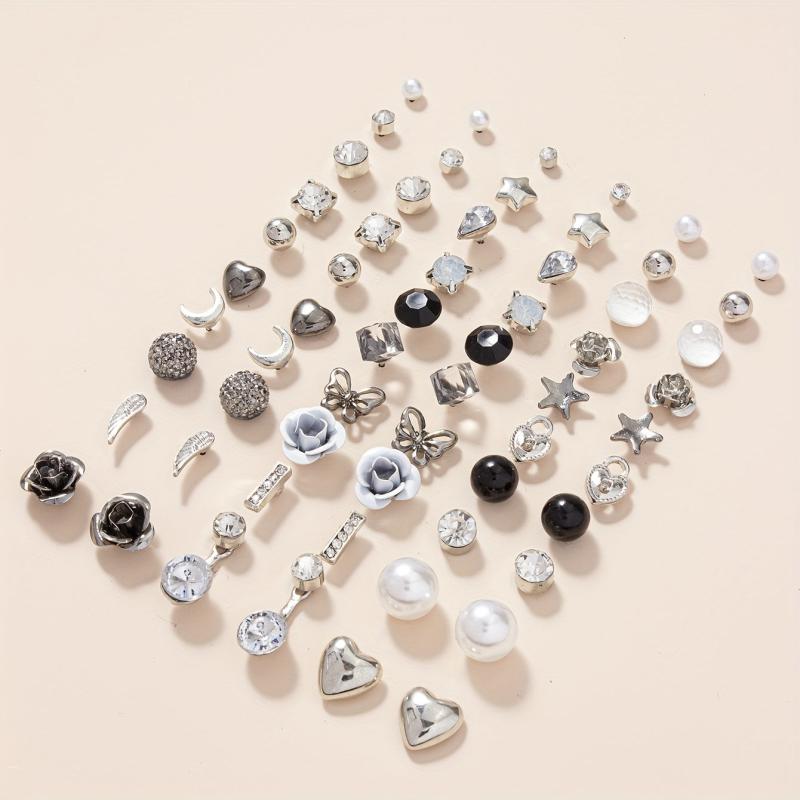 This fashionable set includes 30 pairs of ear piercings featuring flower, love, and butterfly designs. Perfect for daily wear or as a gift for a loved one.