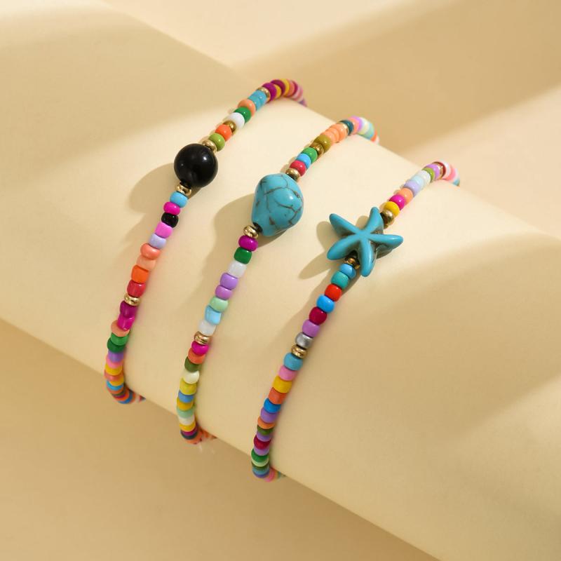 3pcs Boho Starfish Turquoise Beaded Bracelet Set