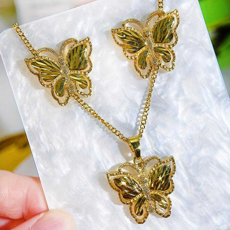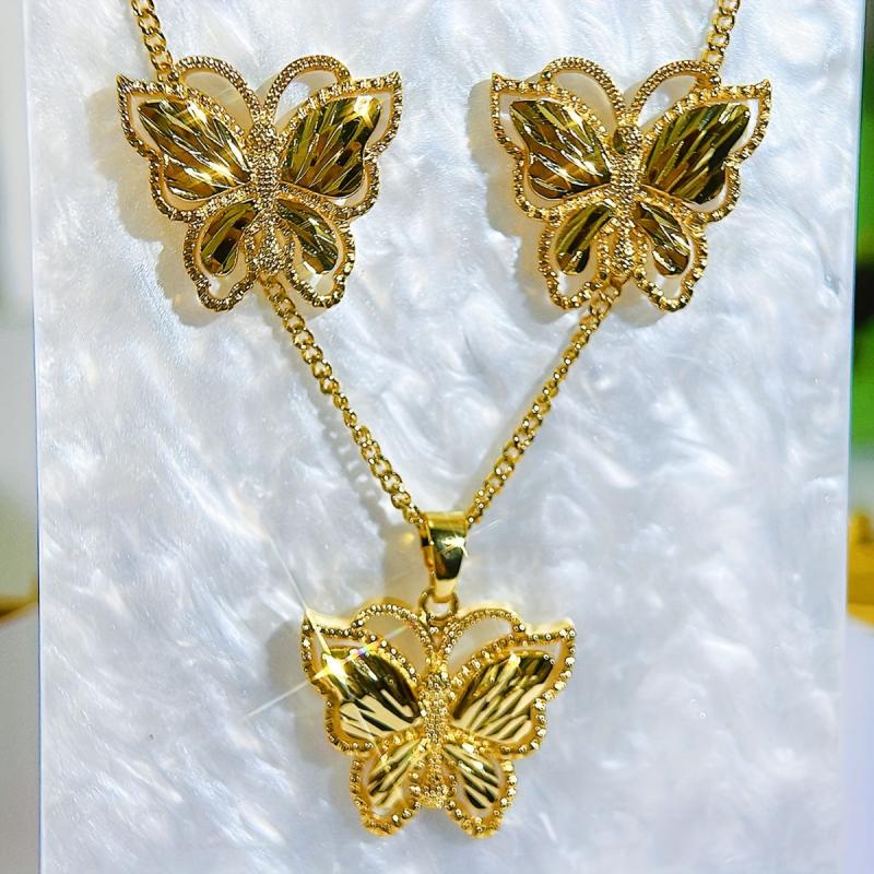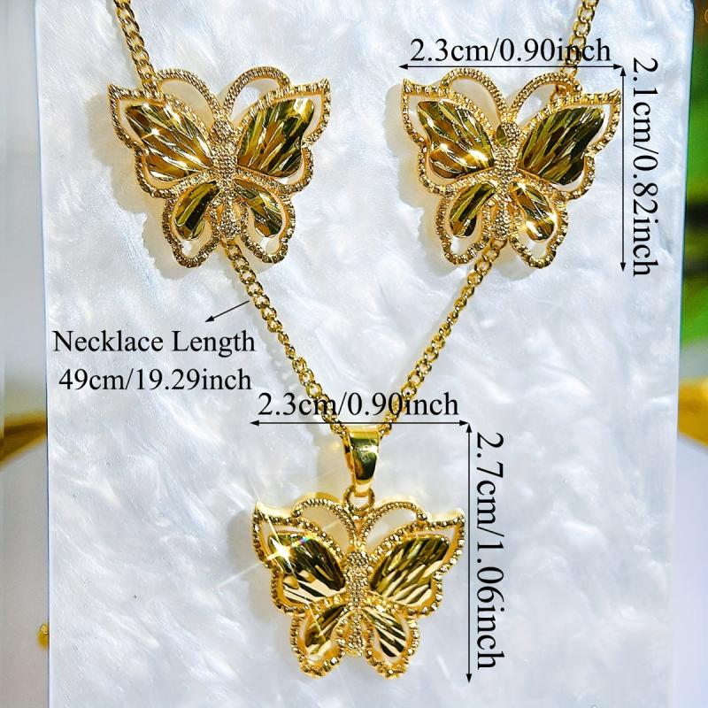 3pcs Golden Jewelry Butterfly Pendant Necklace Stud Earrings Set