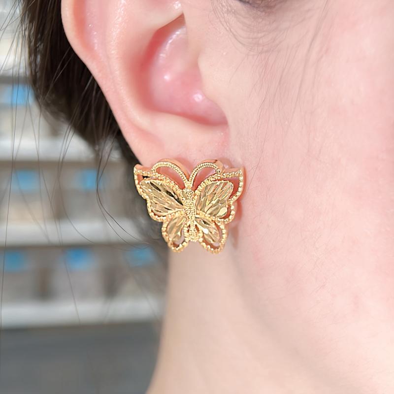 Complete your bridesmaid look with this set of golden jewelry featuring butterfly shape pendant necklace and stud earrings. The perfect accessory to add elegance to your outfit.
