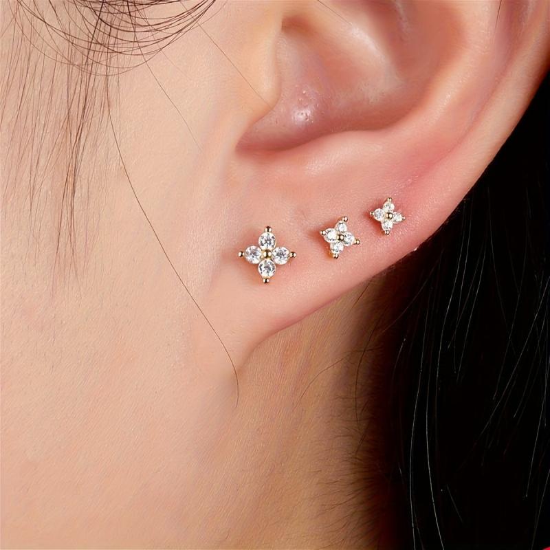 This set of 3 floral earrings is made of hypoallergenic stainless steel, perfect for casual attire or parties. The minimalist design with faux flowers adds a touch of elegance. Suitable for both men and women.