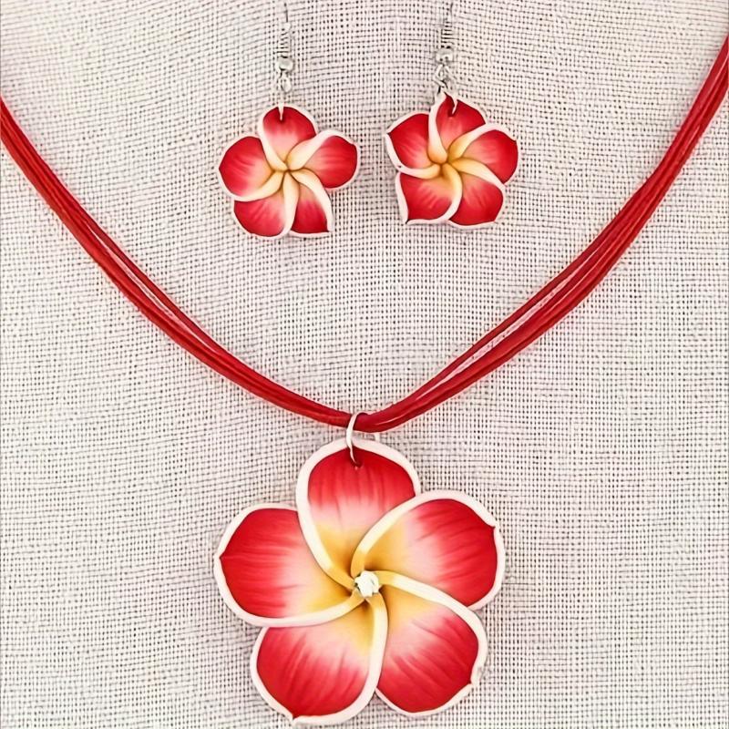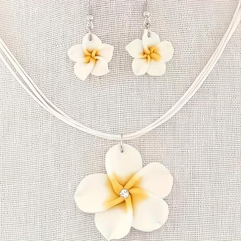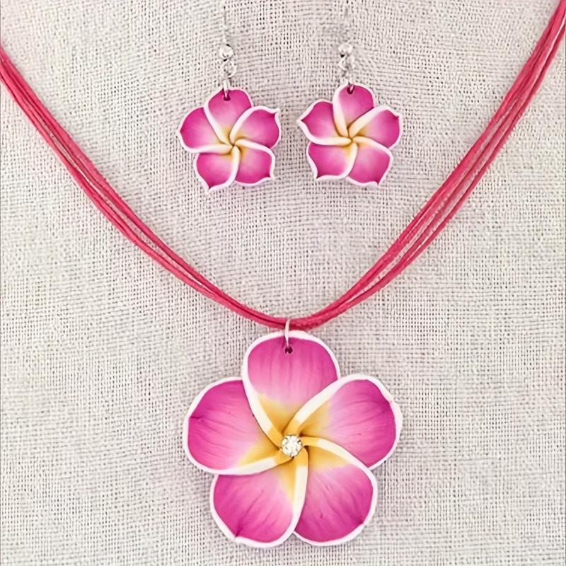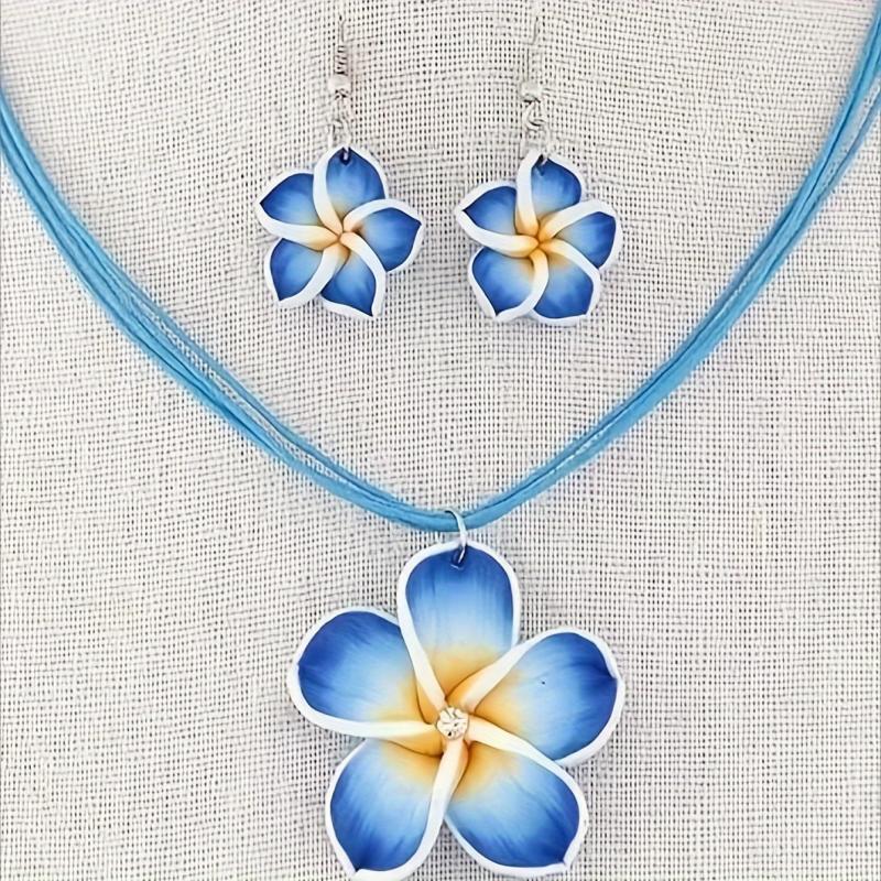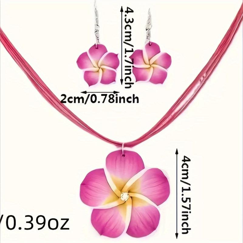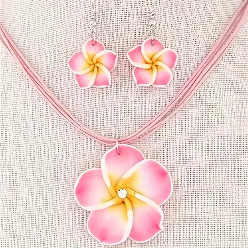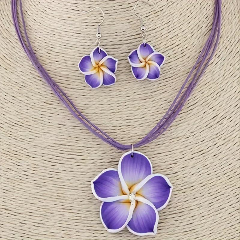 Add a touch of charm to your daily outfit with this fashionable set. The soft clay flowers and wax cord create a sweet and delicate look.