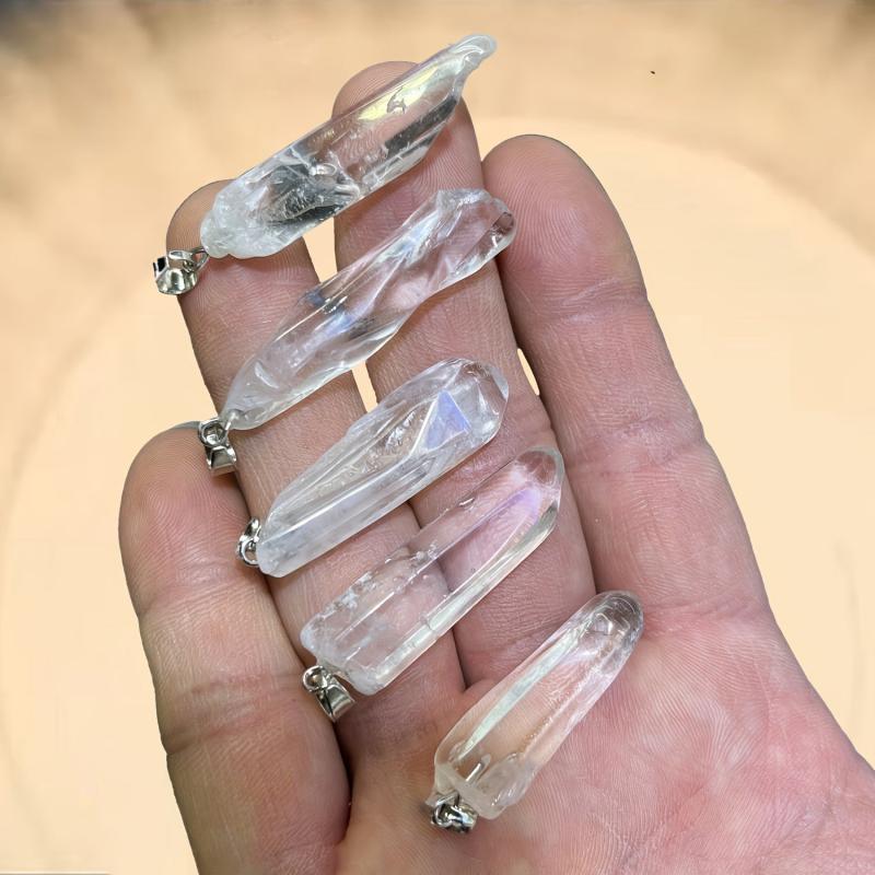 Enhance your jewelry making with these natural rock crystal quartz pendants. Each pendant is unique and contains a 5x2.5mm hole for easy stringing.