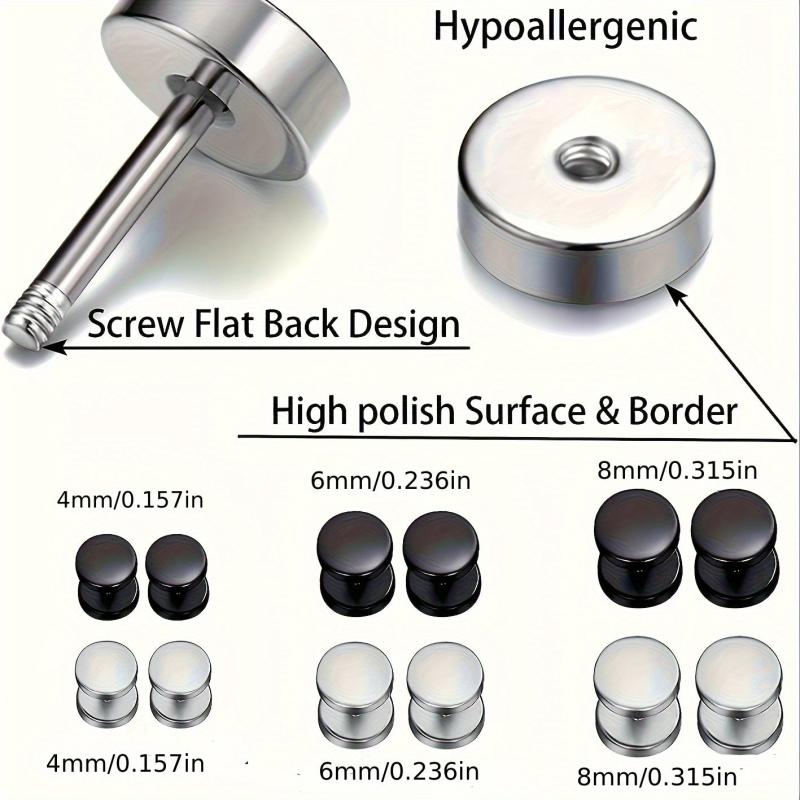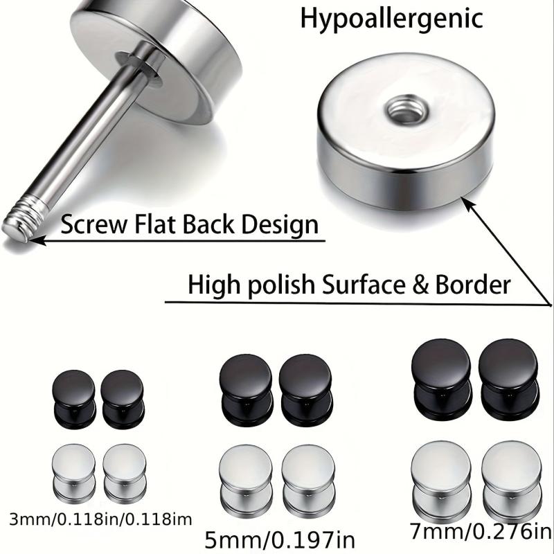 Elevate your style with this set of 6 pairs of stainless steel earrings, featuring a mix of hoop earrings and round barbell ear cartilage studs. Perfect for daily wear and makes a thoughtful Thanksgiving gift for both men and women all year round.