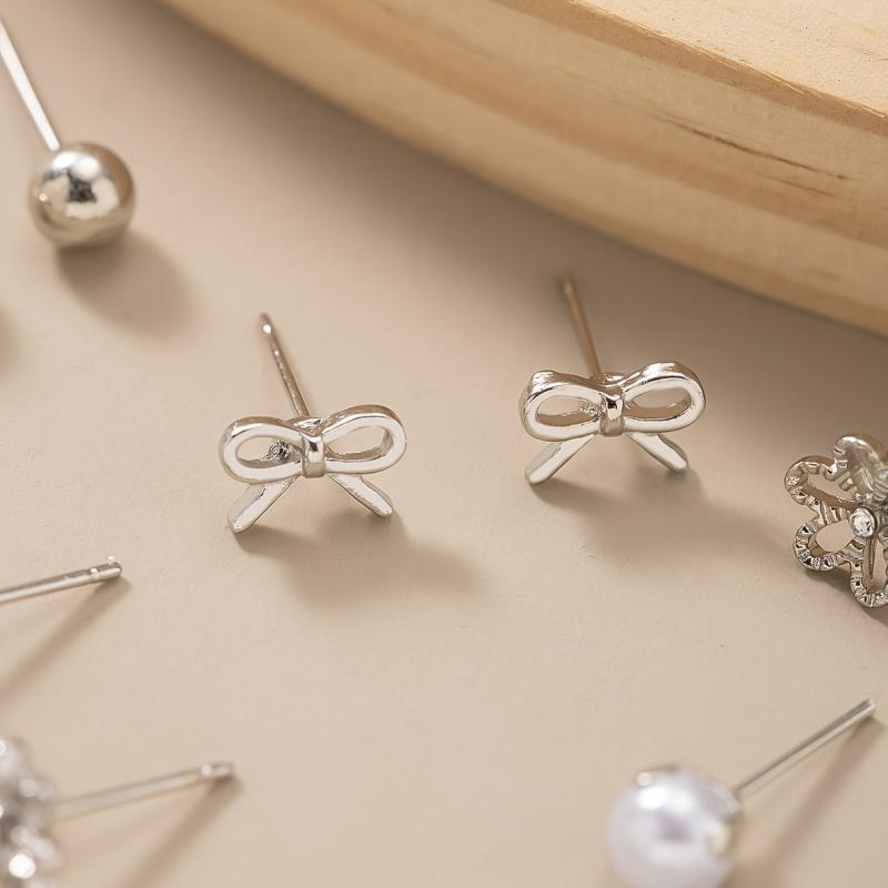 Add a touch of romance to any outfit with this set of heart-shaped bow and floral earrings. Plated for daily wear or special occasions, these earrings are sure to make a statement.