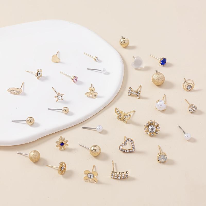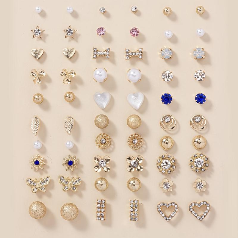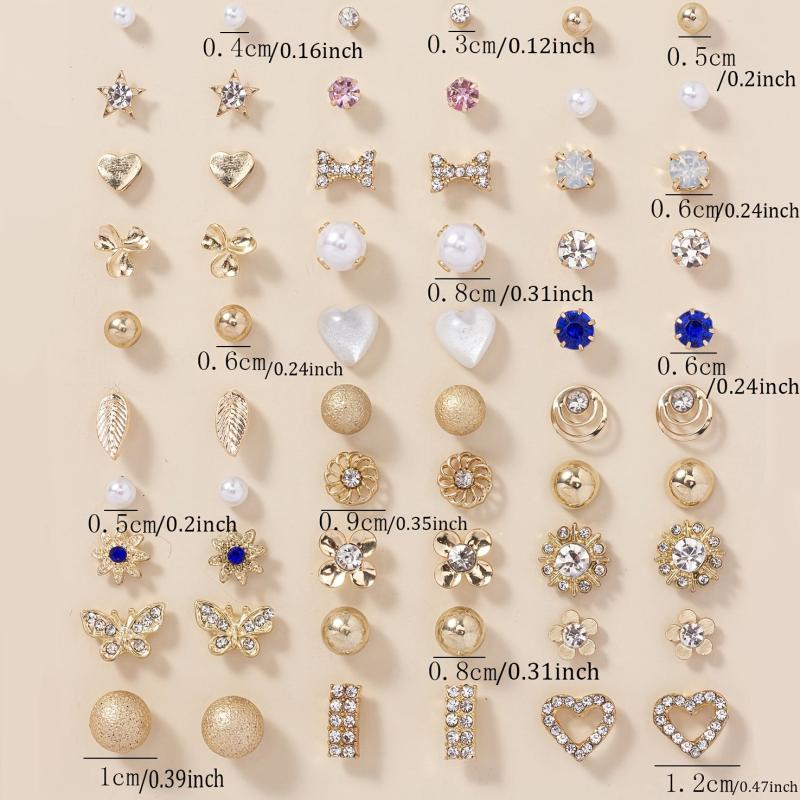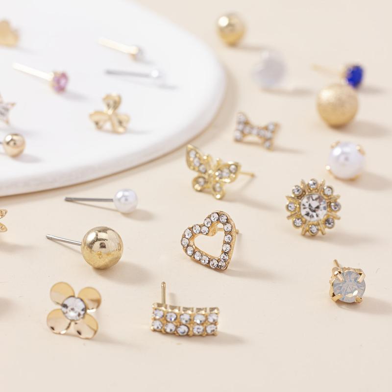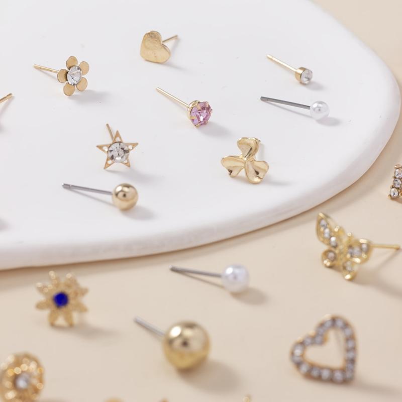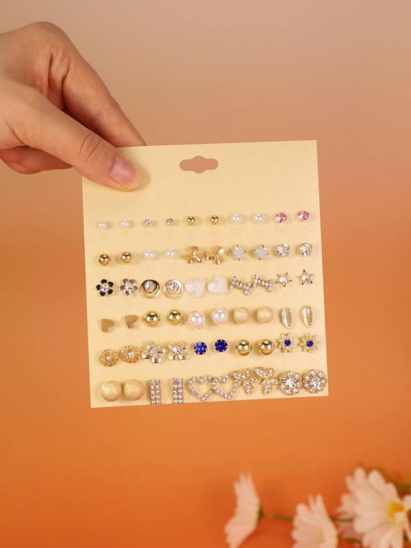 This set includes 60 metal minimalist heart shaped earrings adorned with rhinestones, faux flowers, and butterflies. Perfect for daily wear or as a holiday gift.