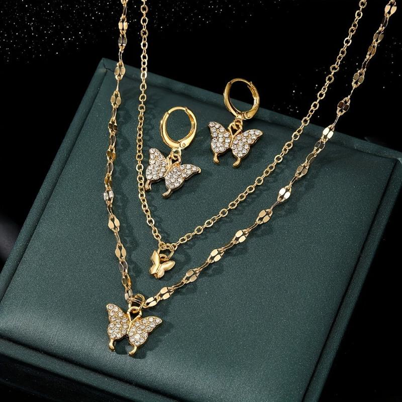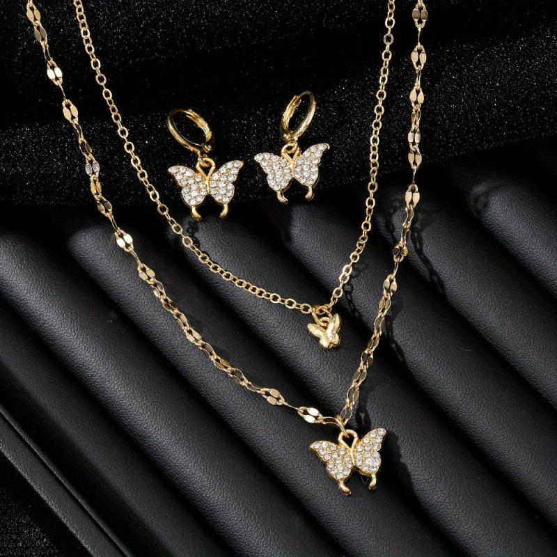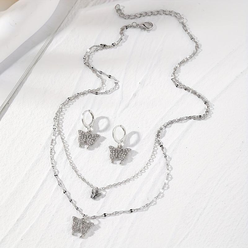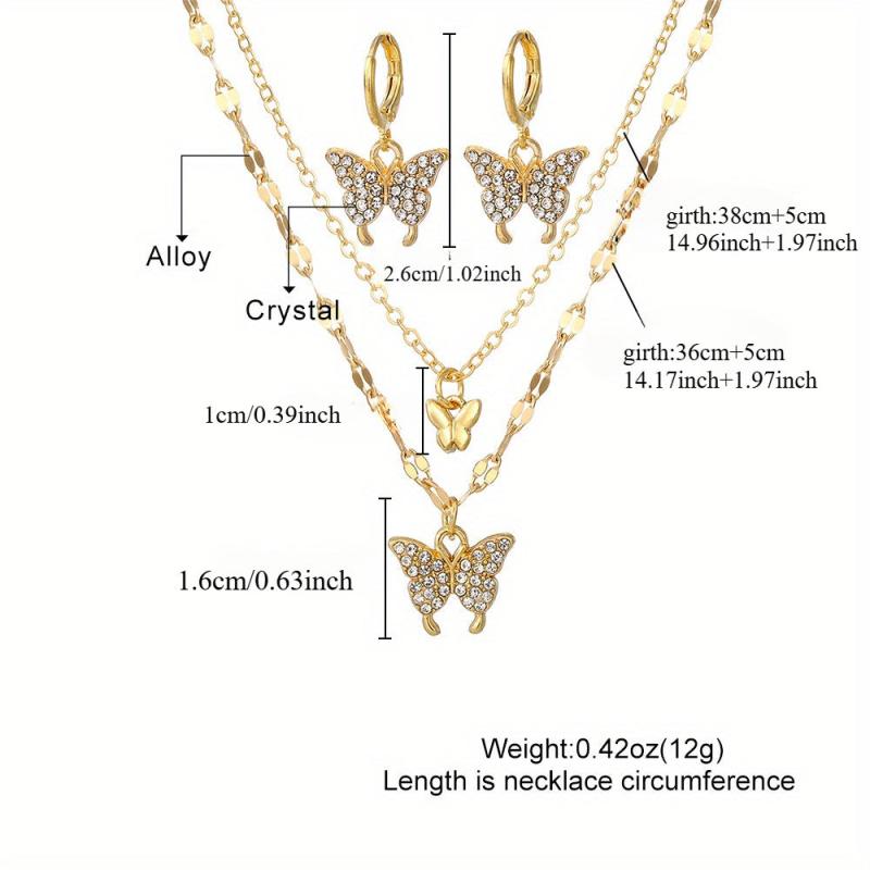 Complete your elegant look with this 6-piece butterfly necklace and earrings set. Perfect for parties, gatherings, or everyday wear.
