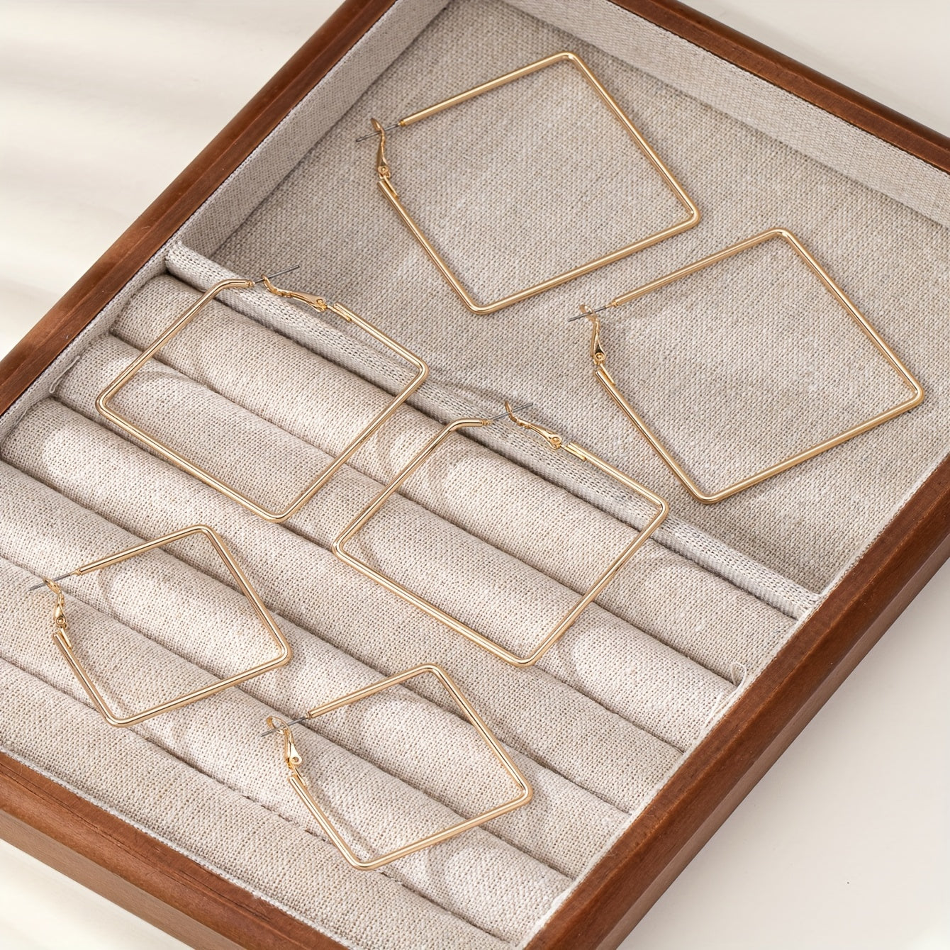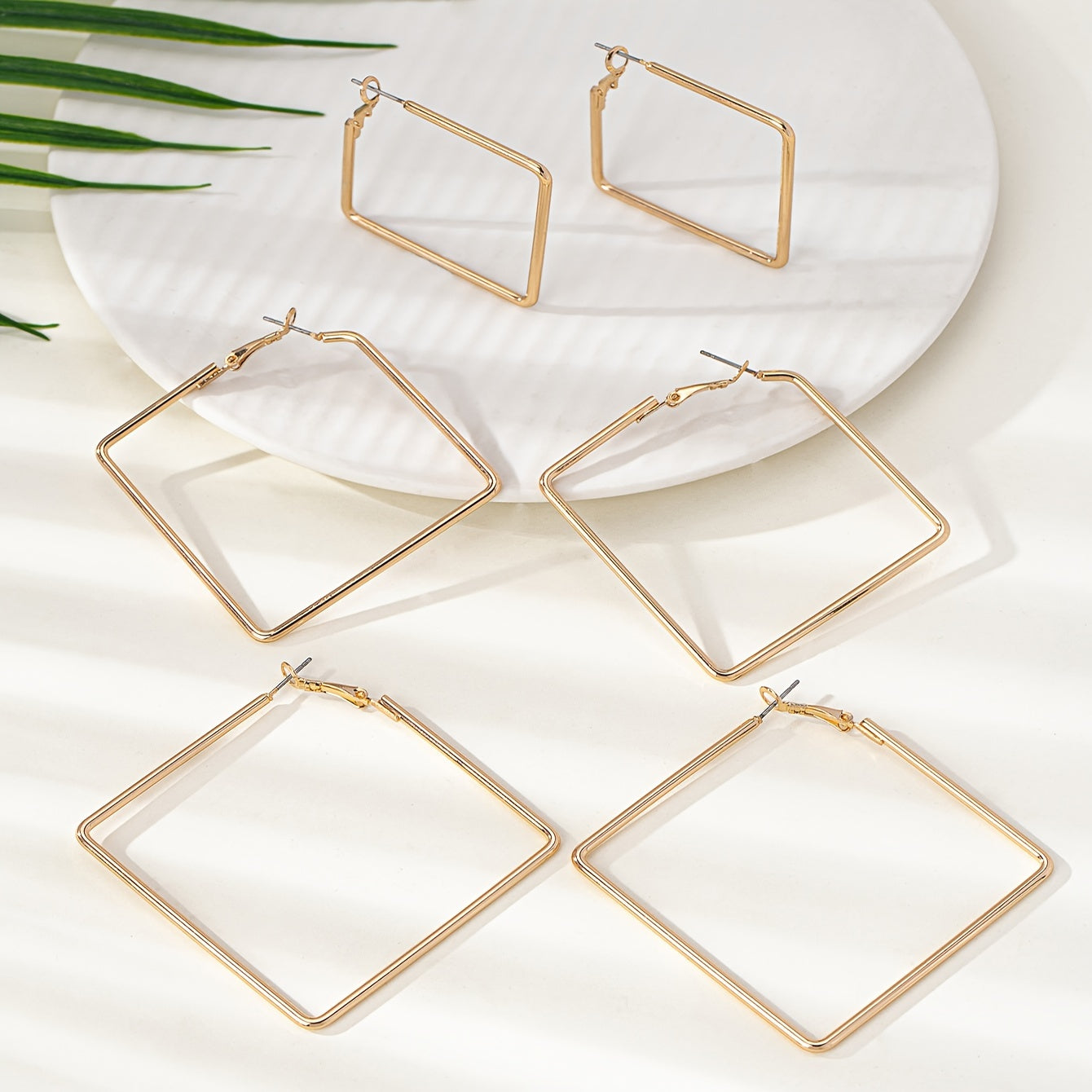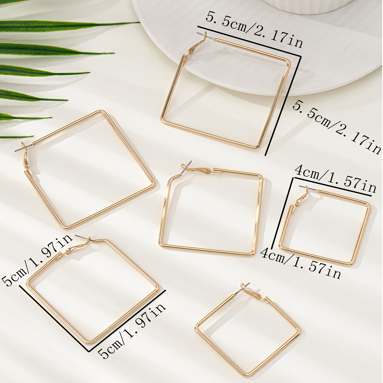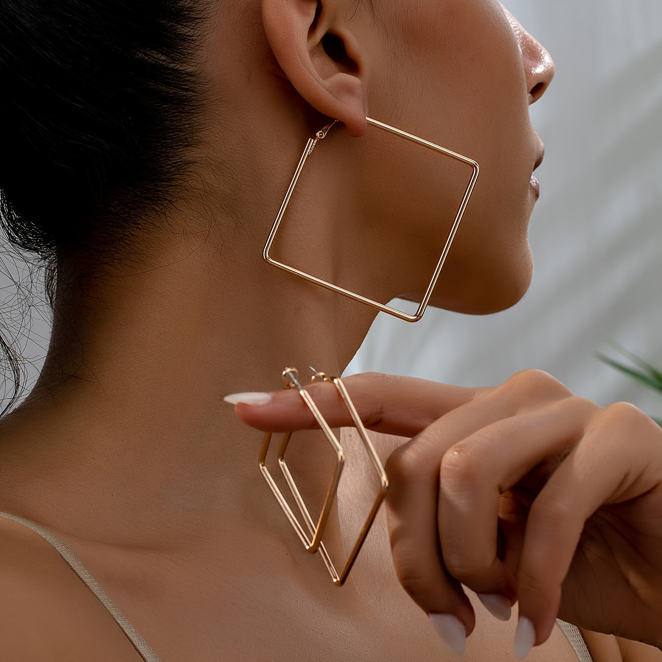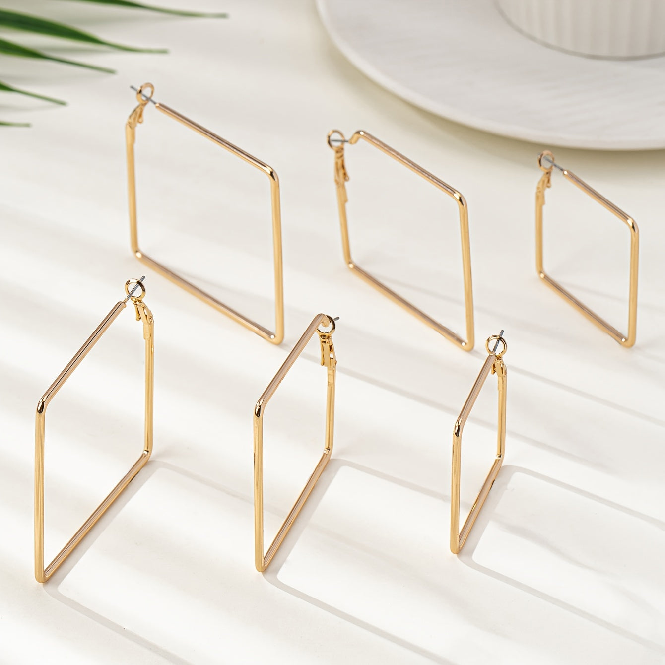 These geometric square hoop earrings are perfect for daily wear. Made with 14K plated iron and stainless steel ear needle, they are lightweight and durable, suitable for all occasions.