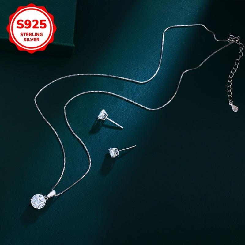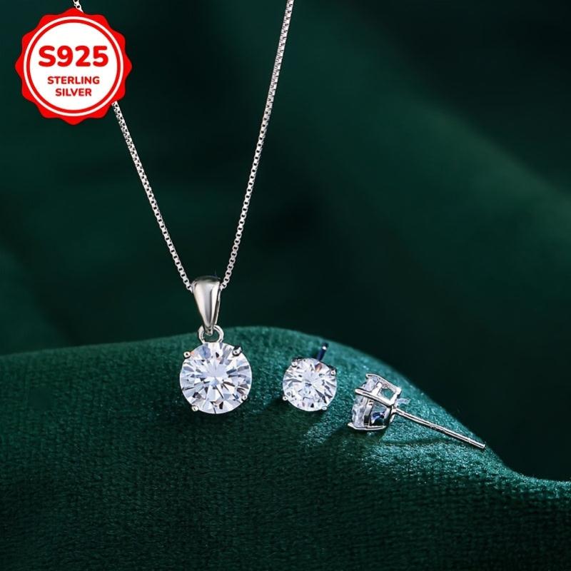 925 Silver Classic Clear Clear Zirkonia Anhänger Halskette Ohrringe Set Set