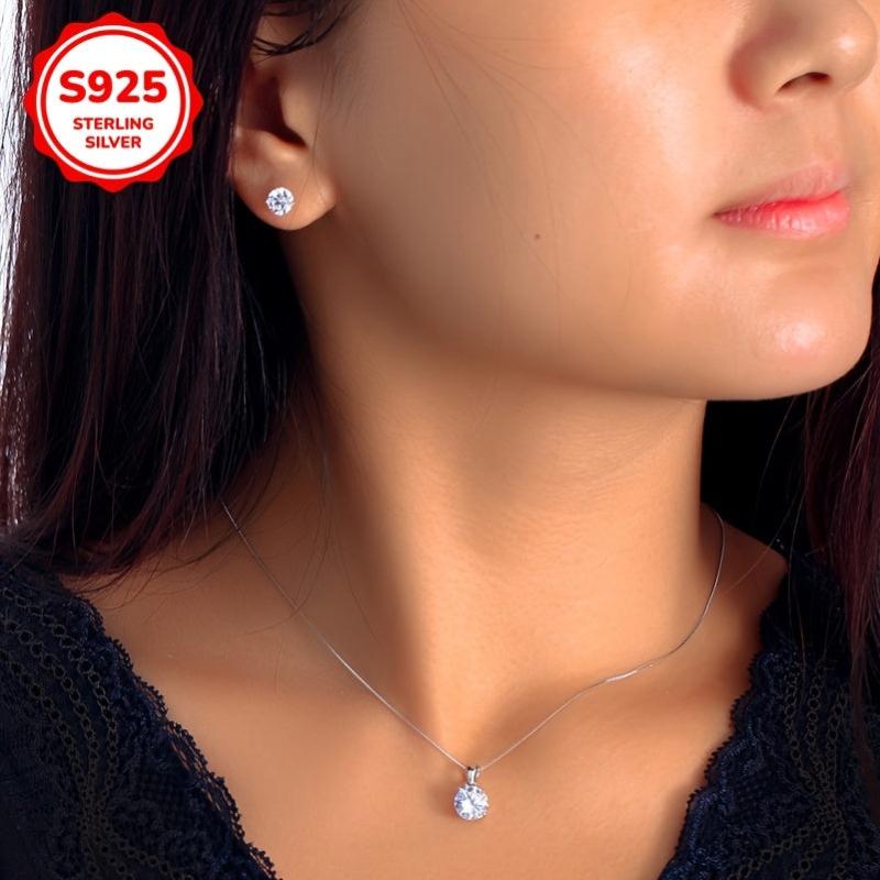 925 Silver Classic Clear Zirconia Pendant Necklace Earrings Set