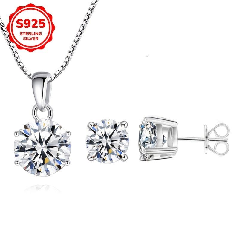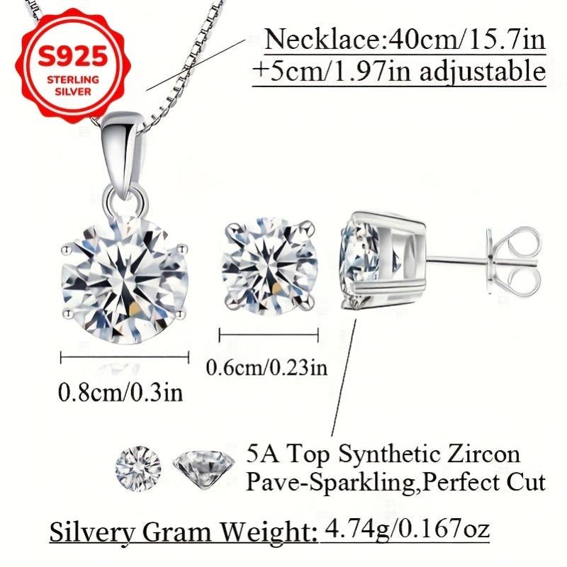 Elegantes Set aus 925 Sterlingsilber mit klaren runden Zirkonia -Inlays. Hypoallergen und perfekt, um tägliche Outfits zu entsprechen.