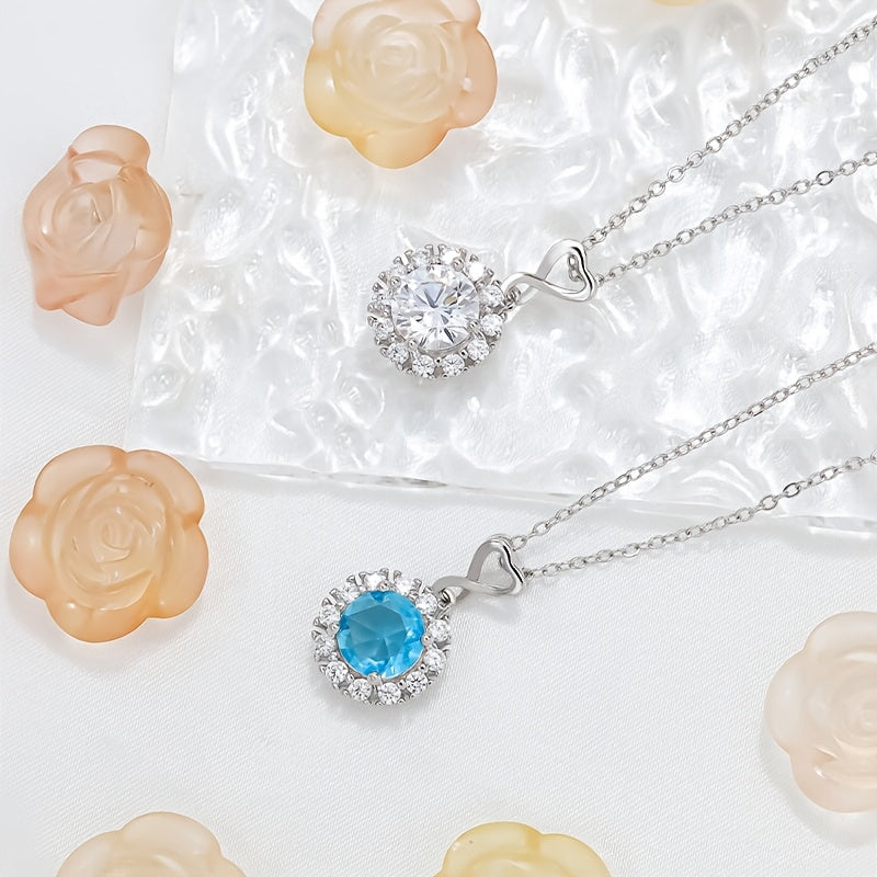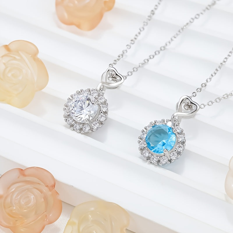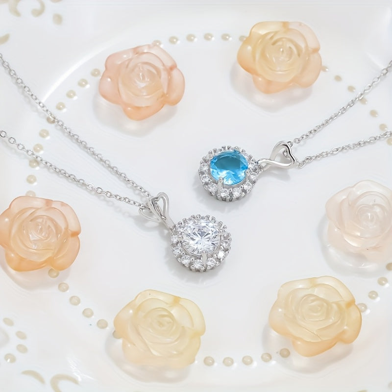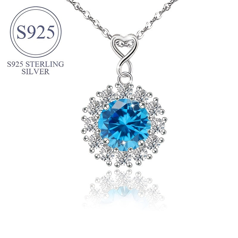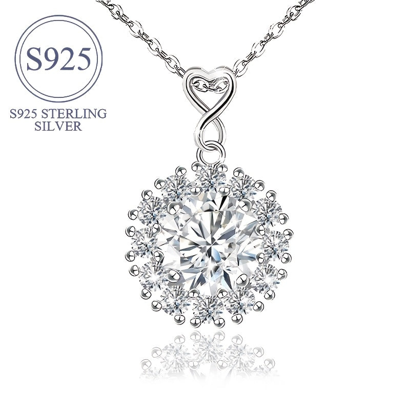 925 Silver Floral Pendant Necklace Synthetic Zirconia Women's Collarbone Chain
