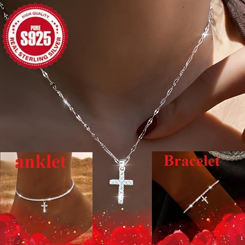 Elegant 925 sterling silver pendant set featuring sparkling cubic zirconia. Perfect for daily wear or as a gift for Valentine's Day or Mother's Day. Versatile accessory for all seasons.